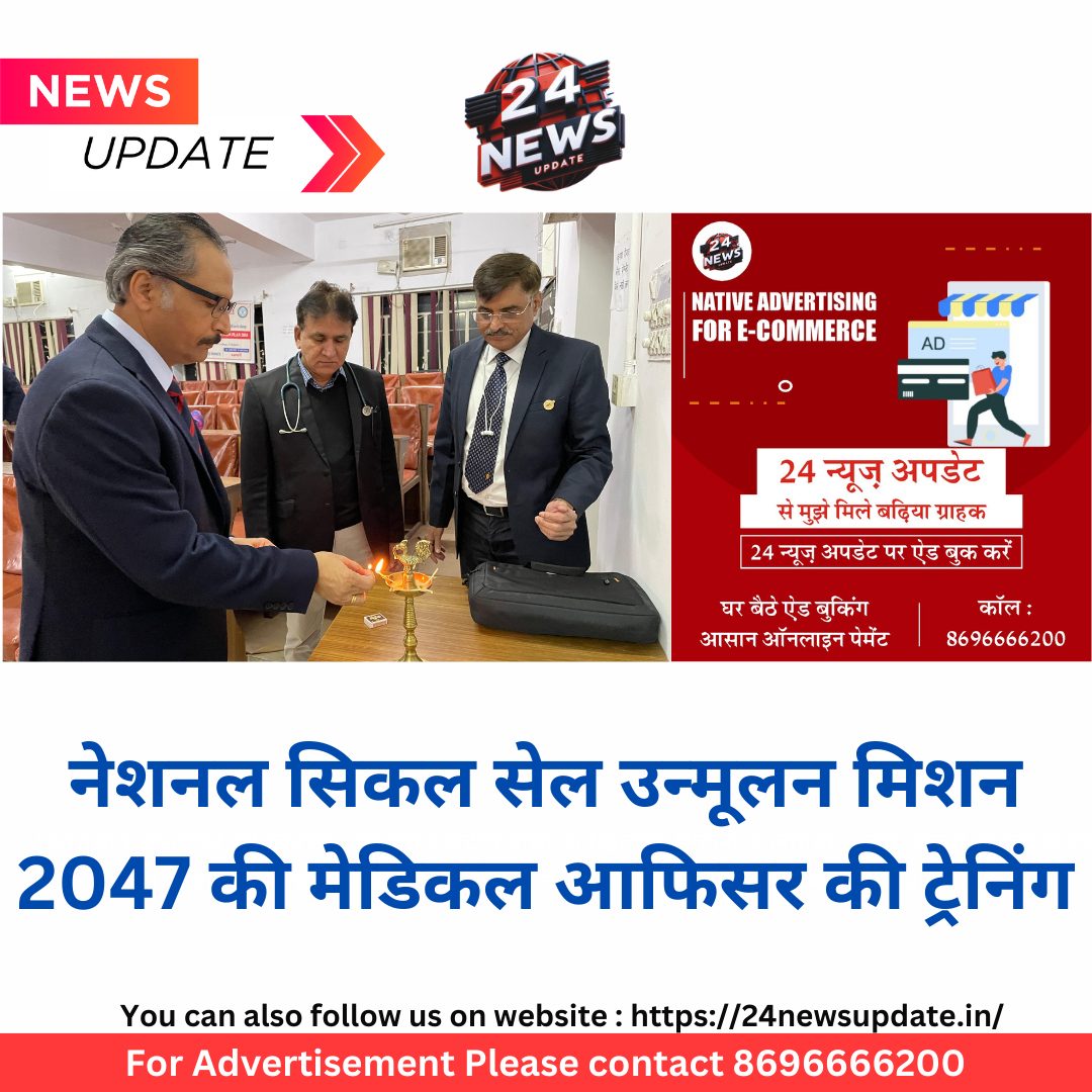 24 न्यूज़ अपडेट उदयपुर .नेशनल सिकल सेल उन्मूलन मिशन 2047 के अंतर्गत सेंटर ऑफ एक्सीलेंस फॉर सिकल सेल डिजीज एवं नेशनल हेल्थ मिशन द्वारा आयोजित मेडिकल ऑफिसर्स के पहले बैंच की ट्रेनिंग का आयोजन बाल चिकित्सालय महाराणा भूपाल भूपाल राजकीय चिकित्सालय में किया गया ¹।