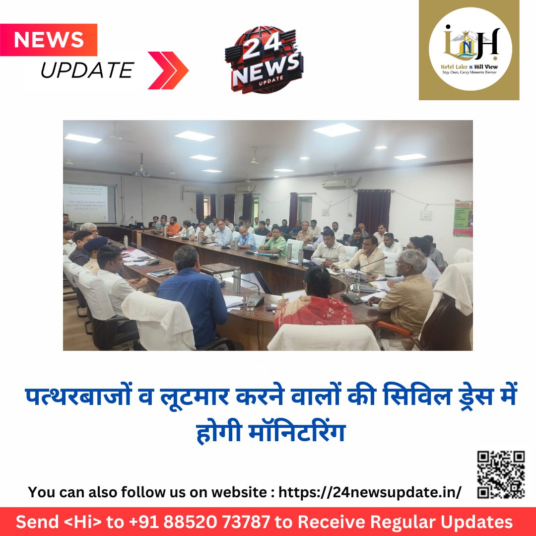 उन्होंने जिला प्रशासन एवं पुलिस प्रशासन के द्वारा पत्थर बाजी की घटनाओं को रोकने के लिए किए गए प्रयासों तथा उसके फल स्वरुप ऐसी घटनाओं में कमी आने के सकारात्मक परिणाम की सराहना करते हुए विभिन्न क्षेत्रों में गणमान्य लोगों को भी संपर्क नंबर देने, थाना सर्किल बार प्रभारी की जवाबदेही तय करने की बात कही, जिससे संदिग्ध गतिविधियों की सूचना तत्काल दी जा सके।