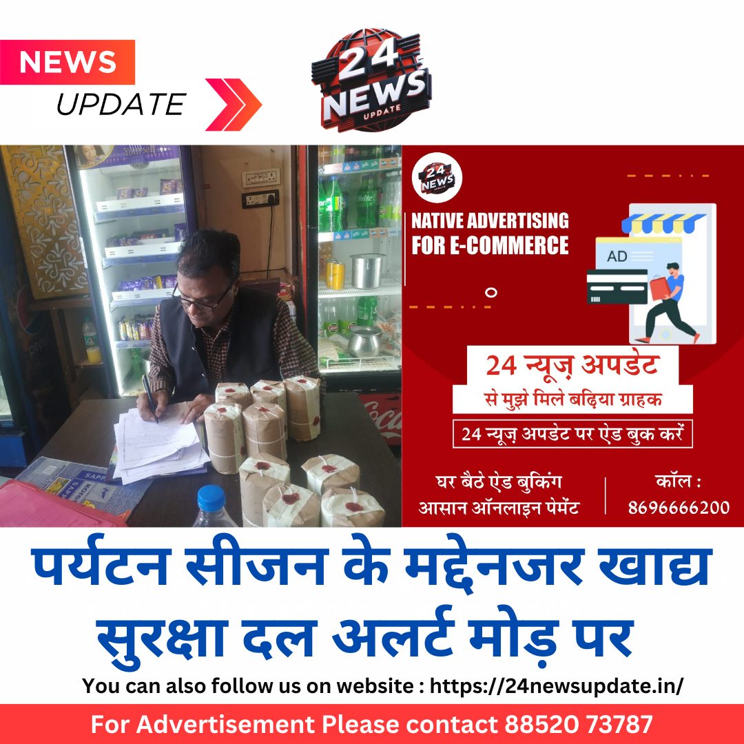 24 न्यूज़ अपडेट उदयपुर. मुख्य चिकित्सा एवं स्वास्थ्य अधिकारी डॉ शंकर एच बामनिया ने बताया कि पर्यटन सीजन पर जिले में बढते पर्यटकों की संख्या को देखते हुए मिलावट की सम्भावना बढ़ जाती है। इसे रोकने हेतु खाद्य सुरक्षा दल ने श्रीमान इकबाल खान आयुक्त खाद्य सुरक्षा एवं औषधि नियंत्रण जयपुर एवं अरविंद पोसवाल जिला कलक्टर उदयपुर के निर्देशानुसार, मुख्य चिकित्सा एवं स्वास्थ्य अधिकारी डाॅ शंकर एच बामणिया द्वारा प्रदत्त निर्देशानुसार आज खाद्य सुरक्षा अधिकारी अशोक कुमार गुप्ता ने मैसर्स- वैदेही फूड प्लाजा, राडाजी चौराहा स्थित से पनीर,दही,चावल के नमूने जांच हेतु लिये गये। यहाँ कई अनियमितता पायी गयी । फूड लाइसेंस एवं फूड सैफ्टी डिस्प्ले बोर्ड का डिस्प्ले नहीं होना पाया गया, पानी की रिपोर्ट एवं पेस्ट कंट्रोल रिपोर्ट नहीं पायी गयी। यहाँ कार्यरत फूड हैण्डलर्स के मेडिकल सर्टिफिकेट नहीं पाये गये, साफ-सफाई नहीं पायी गयी, इन कमियों को दुरस्त करने हेतु विभाग द्वारा इम्प्रुमेंट नोटिस जारी किया जावेगा।