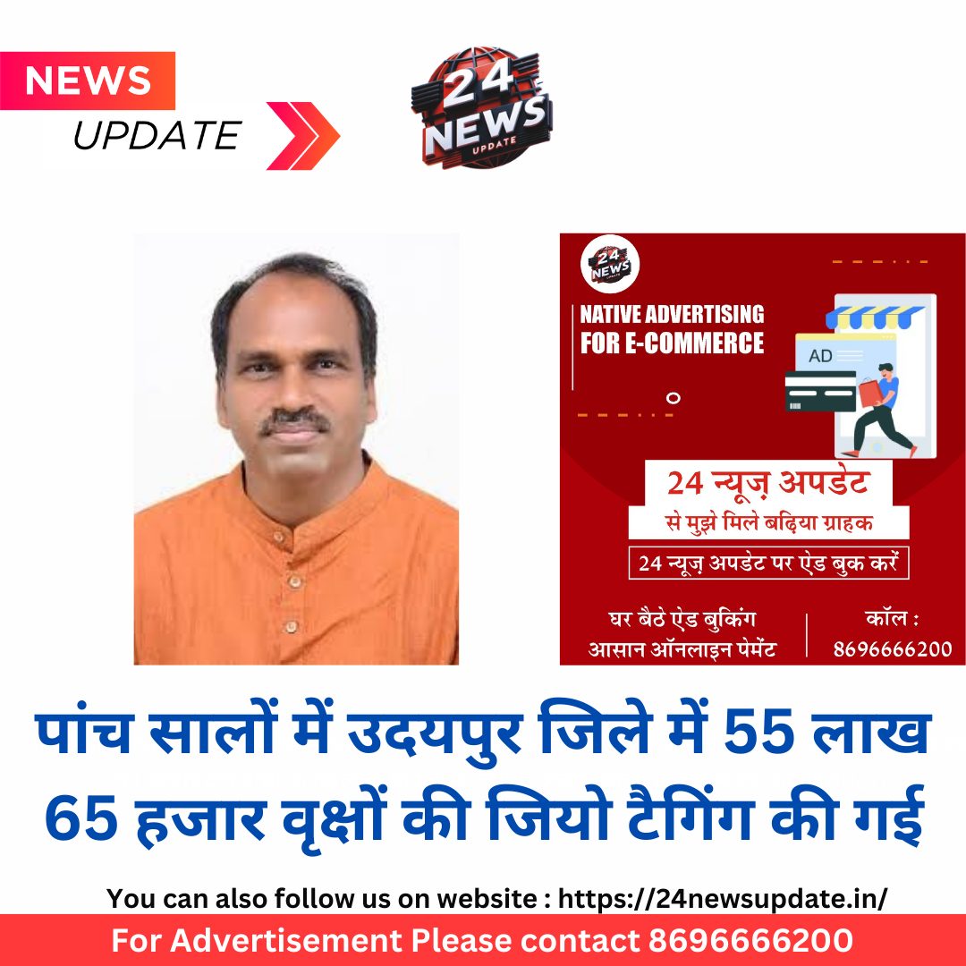 24 न्यूज अपडेट उदयपुर। वन विभाग पिछले पांच वर्षों में उदयपुर जिले में 20 हजार 579 हैक्टेयर क्षेत्र में 55 लाख 65 हजार वृक्ष लगाकर इनकी जियो टैगिंग भी की गई।