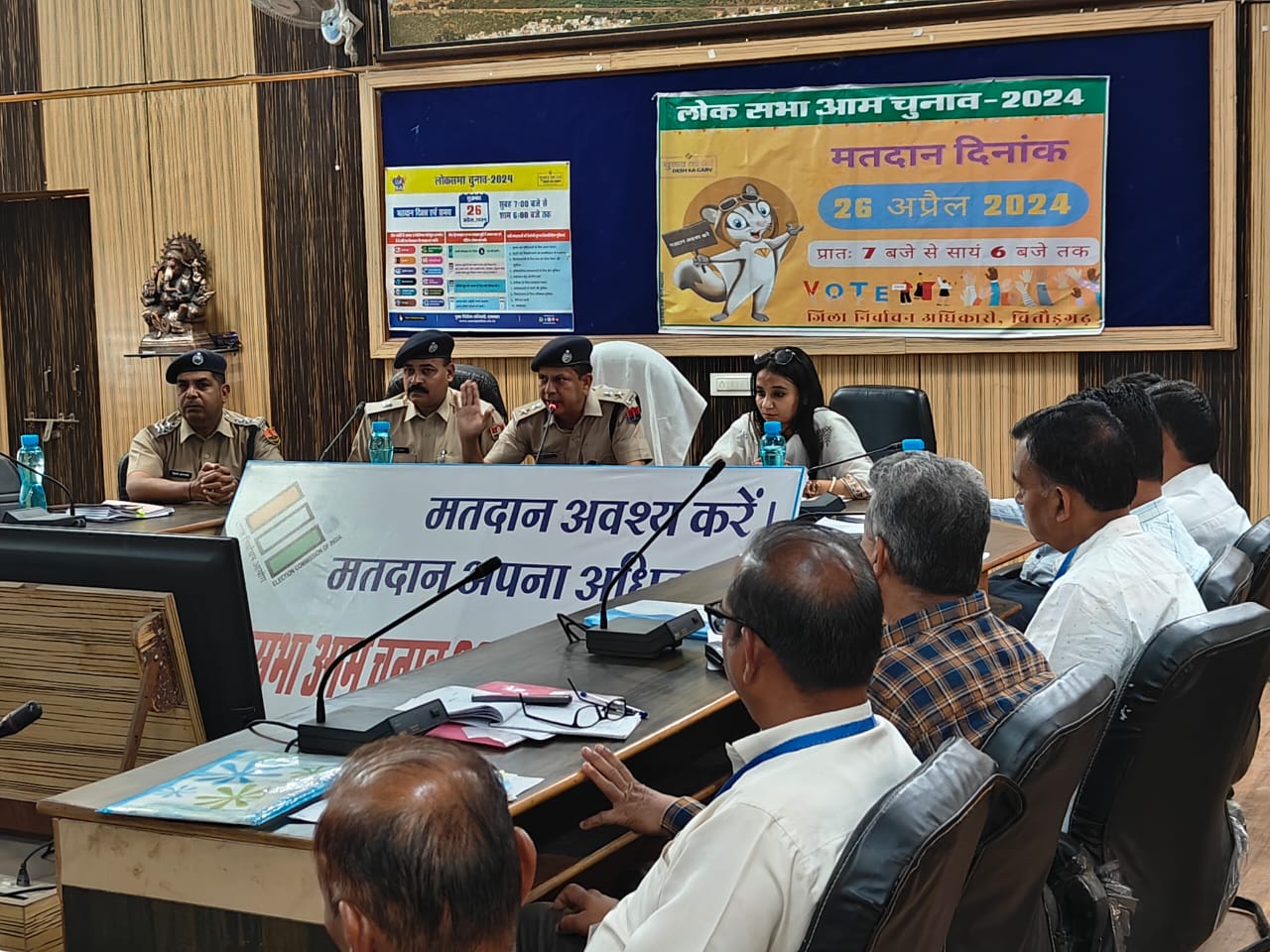 चित्तौड़गढ़ 24 अप्रैल। लोकसभा आम चुनाव, 2024 के मध्यनजर आगामी 26 अप्रैल, 2024 मतदान दिवस के दौरान तैयारियों की समीक्षा हेतु सहायक रिटर्निंग अधिकारी (उपखण्ड मजिस्ट्रेट) चित्तौड़गढ़ बीनू देवल, अति. पुलिस अधीक्षक चित्तौड़गढ़, तहसीलदार चित्तौड़गढ़, पुलिस उप अधीक्षक वृत चित्तौड़गढ़, पुलिस उप अधीक्षक वृत ग्रामीण चित्तौड़गढ़ द्वारा पुलिस सैक्टर आफिसर व सैक्टर आफिसर के साथ विशेष बैठक आयोजित कर शांतिपूर्ण और निष्पक्ष रूप से चुनाव सम्पन्न किये जाने तथा ईवीएम के संबंध में आवश्यक जानकारी व दिशा-निर्देश प्रदान किये।