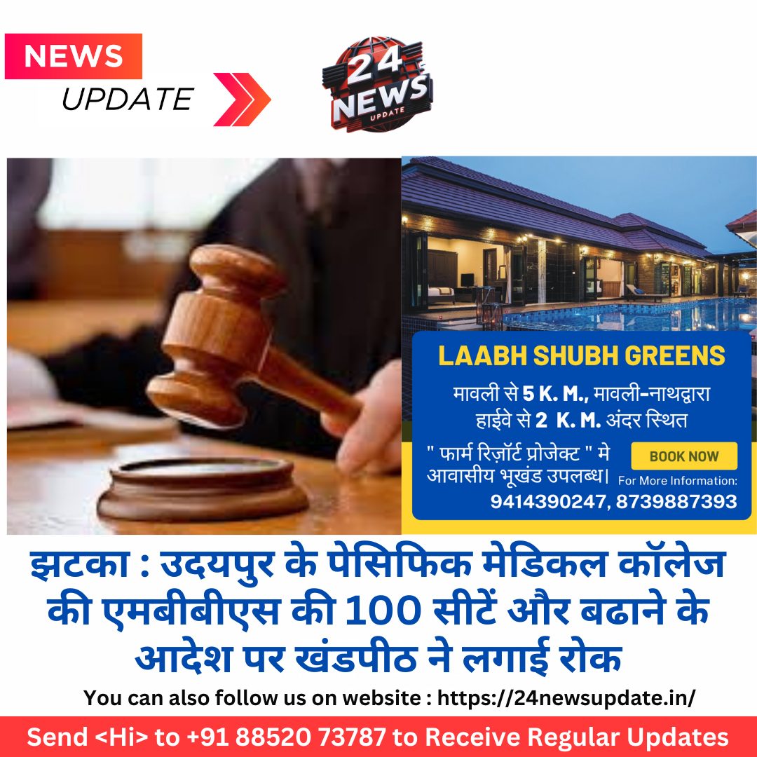 24 न्यूज अपडेट उदयपुर। उदयपुर के पेसिफिक मेडिकल कॉलेज को करोड़ों का झटका लगा है। नीट यूजी से एडमिशन का वक्त लगभग बीता जा रहा है और हाईकोर्ट की डबल बैंच ने 100 सीटें और बढ़ाने के सिंगल बेंच के फैसले को पलट दिया है व रोक लगा दी है। आपको बता दें कि किसी भी प्राइवेट मेडिकल कॉलेज में एक सीट का मतलब जनता की भाषा में लगभग 1 करोड़ का होता है। इस धन को प्रावइेट मेडिकल कॉलेज किस सिस्टमैटिक अंदाज में प्राप्त करते हैं यह भी किसी से छिपा हुआ नहीं है। ऐसे में कोर्ट के इस निर्णय से पेसिफिक समूह को करोड़ों का फटका लगा है।