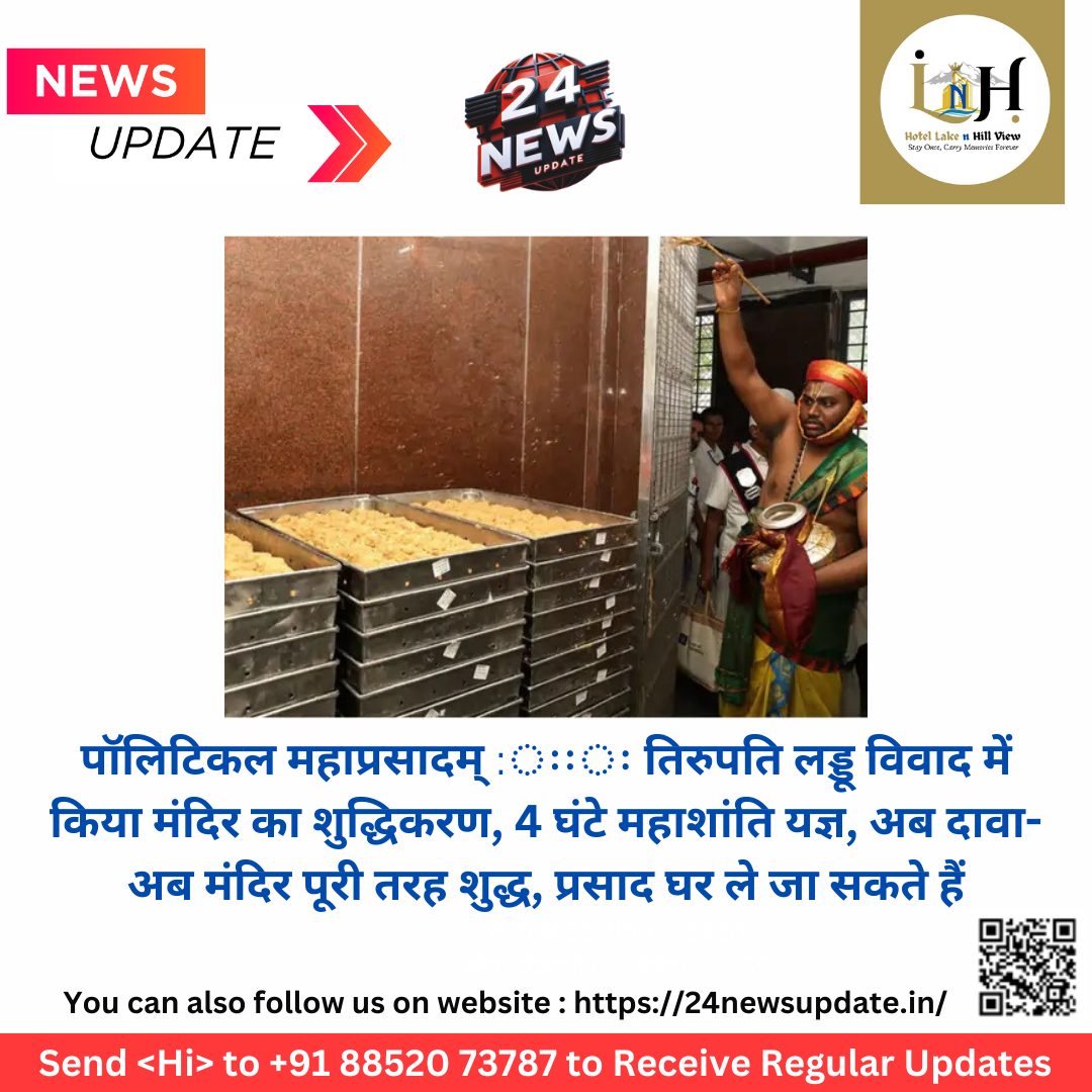24 न्यूज अपडेट. हैदराबाद। आंध्र प्रदेश के श्री वेंकटेश्वर स्वामी मंदिर या तिरुपति मंदिर में शुद्धि के लिए महाशांति यज्ञ का आयोजन किया गया। सुबह 6 से 10 बजे तक चले पंचगव्य प्रोक्षण हुआ। तिरुमाला तिरुपति देवस्थानम बोर्ड की ओर से 20 पुजारियों ने इसे किया। अनुष्ठान में लड्डू और अन्नप्रसादम रसोई की पंचगव्य शुद्धि की गई। मंदिर के मुख्य पुजारियों में से एक कृष्ण शेषाचल दीक्षितुलु ने मीडिया से कहा कि “सरकार एक प्रस्ताव लेकर आई कि मंदिर को शुद्ध करने के लिए क्या किया जाए। इसलिए, हम शांति होम करने के प्रस्ताव के साथ प्रबंधन के पास गए। सुबह 6 बजे हम सभी भगवान वेंकटेश्वर का आशीर्वाद और अनुमति लेने के लिए गर्भगृह में गए। अब सब कुछ शुद्ध हो गया है, मैं सभी भक्तों से अनुरोध करता हूं कि उन्हें अब चिंता करने की जरूरत नहीं है। भगवान बालाजी के दर्शन करें और प्रसाद घर ले जाएं।“ आपको याद दिला दें कि राज्य सरकार ने तिरुपति मंदिर के लड्डुओं की जांच के लिए एक एसआईजी का गठन किया है। सीएम चंद्रबाबू नायडू ने कहा कि रिपोर्ट के आधार पर कार्रवाई होगी। चंद्रबाबू नायडू की पार्टी ने 18 सितंबर को कहा था कि कांग्रेस की सरकार के कार्यकाल में तिरुपति मंदिर में मिलने वाले लड्डू में जानवरों की चर्बी वाला घी और फिश ऑयल मिलाया गया था। इसके अगले दिन एक लैब रिपोर्ट दिखाकर अपने आरोपों की पुष्टि का दावा किया। इसके बाद से यह हंगामा हो रहा है।