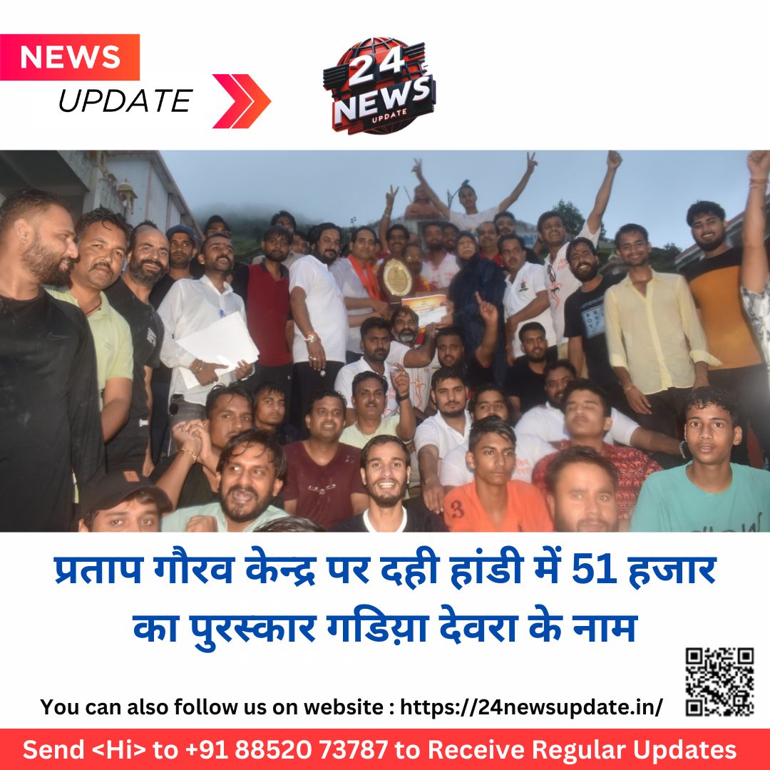 24 न्यूज अपडेट. उदयपुर। प्रताप गौरव केन्द्र राष्ट्रीय तीर्थ में सोमवार को श्री कृष्ण जन्माष्टमी मेला महोत्सव धूमधाम से मनाया गया। सुबह से शाम तक भक्तिधाम में दर्शनार्थियों की रेलमपेल रही। दोपहर में सजे-धजे राधा-कान्हा ने सभी का मन मोह लिया तो शाम को समूचा परिसर दही-हांडी प्रतियोगिता के दौरान हाथी-घोड़ा-पालकी, जय कन्हैया लाल की के जयकारों से गूंज उठा।