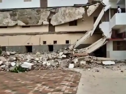 24 न्यूज अपडेट भीलवाड़ा। महेश शिक्षा सदन स्कूल की पहली और दूसरी मंजिल पर बना बरामदा अचानक गिर गया। कमरों के बाहर बना ये बरामदा करीब 100 से 80 फीट लंबा और 10 फीट चौड़ा था। बताया जा रहा है कि पुराना निर्माण और बरसात की सीलन के कारण बरामदा ढह गया। रविवार सुबह यह हादसा हुआ। रोडवेज बस स्टैंड के निकट महेश शिक्षा सदन स्कूल में हादसे के दौरान रविवार की छुट्टी होने के कारण बड़ा हादसा टल गया। घटना के बाद स्कूल प्रशासन मौके पर पहुंचा और घटना का जायजा लिया। स्कूल प्रबंधन ने जानकारी देने से मना कर दिया। हादसे के कारणों की जांच की जा रही है। जेसीबी मशीन व अन्य मजदूरों की सहायता से मलबा हटाने का कार्य किया जा रहा है। बच्चों के अभिभावकों ने स्कूल प्रबंधन पर लापरवाही के आरोप लगाये हैं। उनका कहना है कि स्कूल प्रबंधन की लापरवाही के चलते यह हादसा हुआ है। स्कूल प्रबंधन अभिभावकों की मेहनत की कमाई से मोटी मोटी फीस तो वसूल कर लेते हैं लेकिन मेंटेनेंस की ओर ध्यान नहीं दिया जाता है। इसी के चलते आज स्कूल बिल्डिंग का बरामदा गिर गया। गनीमत रही की रविवार के चलते छुट्टी थी। वरना बड़ा हादसा हो सकता था और कई स्टूडेंट इसकी चपेट में आ जाते।