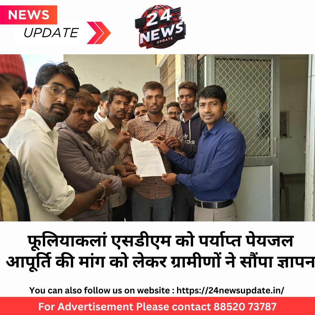 सूरज वर्मा 24 न्यूज़ अपडेट शाहपुरा. शाहपुरा के फुलिया कलां में पर्याप्त आपूर्ति नही होने से लोगों को करना पड़ रहा है पेयजल संकट का सामना कस्बे के वार्ड नं. 5,6, 7,8 के लोगों ने सौंपा एसडीएम के नाम ज्ञापन, समय रहते समाधान नही होने पर आंदोलन की दी चेतावनी फूलियाकलां कस्बे का है मामला स्थानीय गाँव में लम्बे समय से पेयजल की आपूर्ति जलदाय विभाग द्वारा की जा रही है। वर्तमान में पेयजल आपूर्ति चम्बल परियोजना के तहत सुचारू रूप से पुरे गाँव में की जा रही है लेकिन स्थानीय गाँव के अनुसूचित जाति के वार्ड संख्या 5,6,7,8 में वर्षो से पेयजल की आपूर्ति नहीं के बराबर हो रही है जिससे अनुसूचित जाति के व्यक्तियों को पीने का पानी नसीब नहीं हो रहा है इस सम्बन्ध में अनेक बार विभागीय अधिकारीयों व् उच्च अधिकारीयों को पेयजल की आपूर्ति नियमित व् पर्याप्त मात्रा में सप्लाई कराने हेतु लिखित में निवेदन किया गया था परन्तु इसके उपरान्त भी विभागीय कर्मचारीयों की कुम्भकरणी नींद नहीं खुली है जिसका खामियाजा अनुसूचित जाति के व्यक्तियों को भुगतना पड़ रहा है निवेदन है की ग्रीष्म ऋतु के मध्यनजर रखते हुए अनुसूचित जाति की बस्तियों में पेयजल की आपूर्ति सुनिचित शीघ्र करावे अन्यथा मजबूरन सात दिवस के बाद एसडीएम कार्यालय पर धरना व आन्दोलन किया जायेगा जिसकी समस्त जिम्मेदारी प्रशासन की होगी । Share this: Share on X (Opens in new window) X Share on Facebook (Opens in new window) Facebook More Email a link to a friend (Opens in new window) Email Share on WhatsApp (Opens in new window) WhatsApp Like this:Like Loading... Related Discover more from 24 News Update Subscribe to get the latest posts sent to your email. Type your email… Subscribe Post navigation पुष्कर और भीलवाड़ा अधिवक्ताओं पर हुए जानलेवा हमले के विरोध में तथा अधिवक्ता प्रोटेक्शन एक्ट को लागू करने का ज्ञापन राष्ट्रपति के नाम दिया होली के बाद ऐहड़ा खेला तो होगी सख्त कार्रवाई, डीएफओ सुले ने जारी की एडवाइजरी