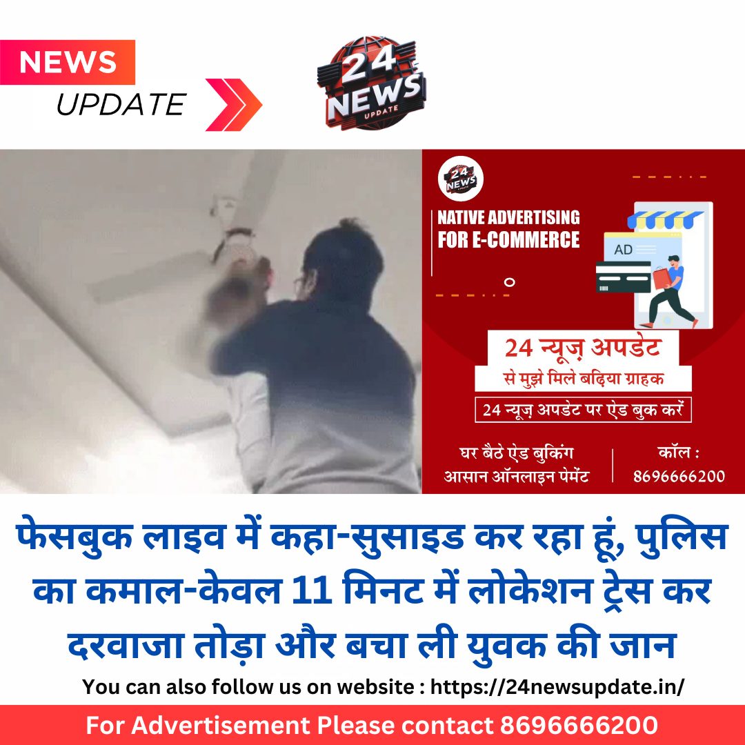 24 न्यूज अपडेट. जयपुर। आज पुलिस की वाहवाही की जा रही है। हौसले को सलाम किया जा रहा है। पुलिस ने फेसबुक लाइव आकर सुसाइड की कोशिश कर रहे युवक की जान बचा ली। केवल एक पुलिसकर्मी की सक्रियता से कमाल हो गया, अनर्थ होने से बच गया। पुलिसकर्मी ने मोबाइल लोकेशन निकाली और होटल स्टाफ को कॉल किया। होटल के कर्मचारियों ने रूम का दरवाजा तोड़कर फंदे पर झूलने से ठीक पहले जान बचा ली। जयपुर के श्यामनगर इलाके का पूरा मामला है। एक युवक शनिवार को जयपुर के बगरू थाना इलाके में अजमेर रोड स्थित होटल में गया व कमरा लिया। रात करीब सवा नौ बजे उसने अपने कमरे से फेसबुक लाइव करना शुरू कर दिया। बात करते करते उसने सुसाइड करने की बात कह दी। बताया गया कि रात को 9.39 बजे गांव में युवक पवन के परिवार ने फेसबुक लाइव देख लिया। उन्होंने तुरंत हेड कॉन्स्टेबल दिनेश शर्मा को बताया। दिनेश जयपुर वेस्ट साइबर सेल में हेड कॉन्स्टेबल हैं। उन्होंने बिना समय गंवाए लोकेशन निकाली और होटल स्टाफ को अलर्ट किया। बोला कि गेट तोड़कर युवक को बचाओ। होटल स्टाफ ने रूम का दरवाजा तोड़ा तो देखा कि युवक ने फंदे से सिर फंसा लिया था व सुसाइड करने ही वाला था। इसके बाद श्याम नगर थाना सीआई दलबीर सिंह मौके पर गए व काउंसलिंग की। युवक की फोटोकॉपी की दुकान है।