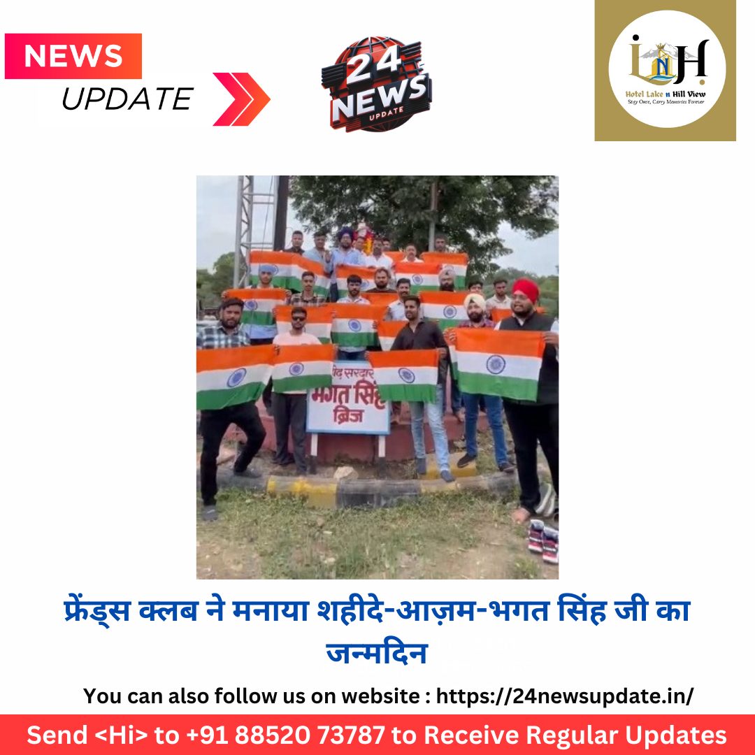 24 न्यूज़ अपडेट उदयपुर. अमर शहीद भगत सिंह जी की जन्म-जयंती पर फ्रेंड्स क्लब के द्वारा आयुष अरोड़ा के नेतृत्व में सेवाश्रम स्थित शहीद भगत सिंह जी की मूर्ति पर पुष्पांजलि कार्यक्रम रखा गया।