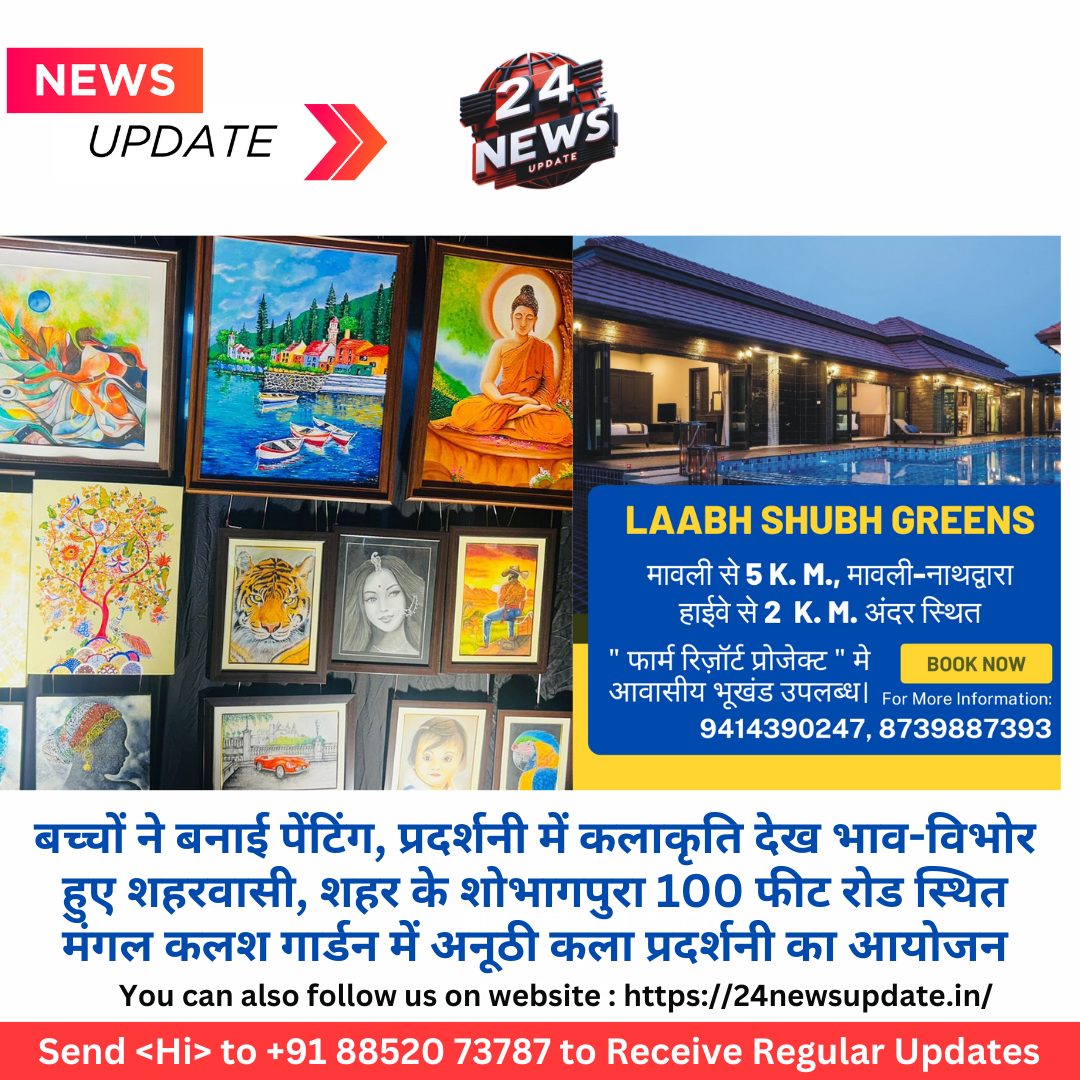 24 न्यूज़ अपडेट उदयपुर. शहर के शोभागपुरा 100 फीट रोड स्थित मंगल कलश गार्डन में अनूठी कला प्रदर्शनी शहरवासियों को आश्चर्यचकित कर रही है। यहां बच्चों की बनाई हुई 1000 से अधिक पेंटिंग सजाई गई है जो बच्चों ने खुद ही तैयार की है। बच्चों की कलाकारी देखकर खुद उनके परिवारजन और शहरवासी मुक्त कंठ से तारीफ कर रहे है।