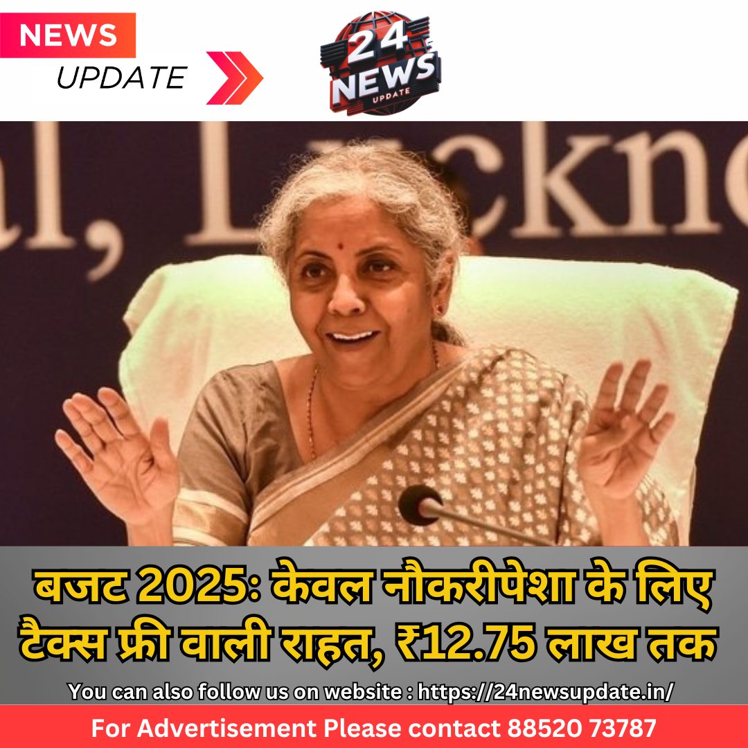 24 न्यूज अपडेट उदयपुर। वित्त मंत्री निर्मला सीतारमण ने बजट 2025 में नौकरीपेशा लोगों के लिए एक बड़ी राहत का ऐलान किया है। नई टैक्स रिजीम के तहत अब ₹12.75 लाख तक की आय पर कोई टैक्स नहीं लगेगा। यह राहत नौकरीपेशा व्यक्तियों के लिए है, जिनकी आय मुख्यतः सैलरी से आती है।