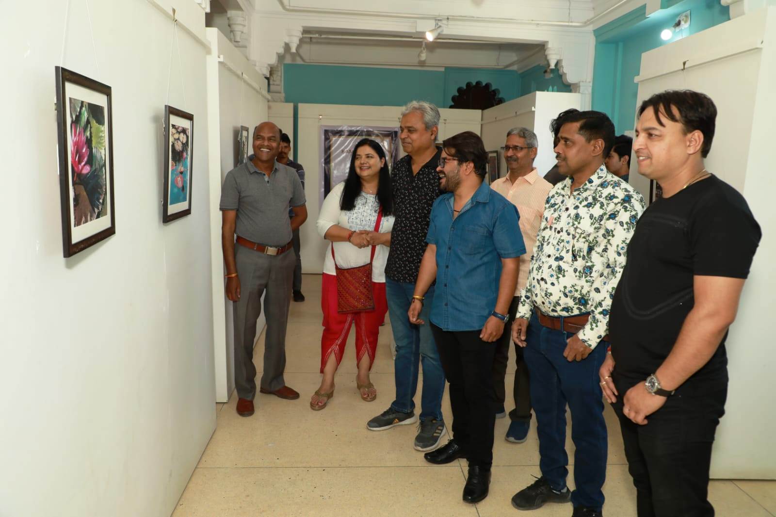 एग्जिबिशन। वडोदरा की कलाकार अवनी शाह की चित्र प्रदर्शनी का शुभारंभ करते अतिथि। प्रदर्शनी का अवलोकन करते अतिथि व कलाप्रेमी।