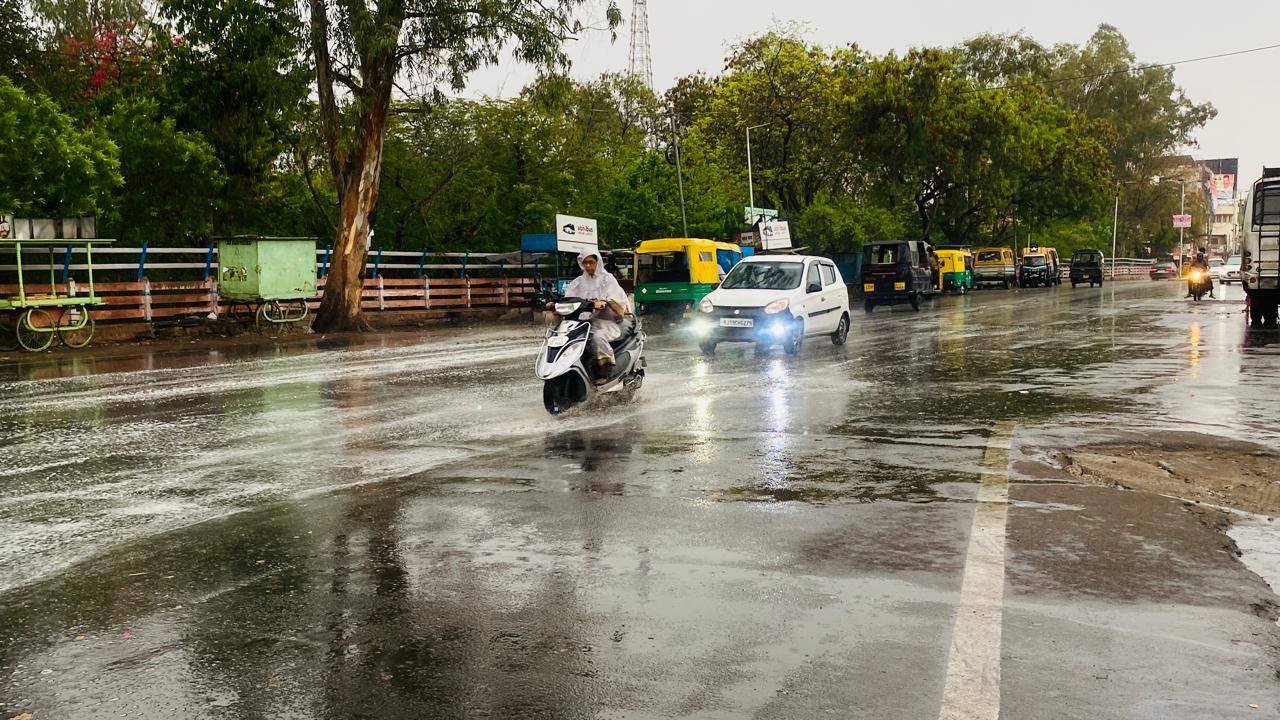 उदयपुर। लेकसिटी उदयपुर में आज मौसम ने बादलों पर सवार होकर अंगडाई ली। खिली धूप के बीच आए बादलों की टोलियों ने जी भरकर पानी बरसाया। मौसम की रंगत बदलते ही लोगों के चेहरे खिल उठे। इससे पहले धूल भरी हवाओं और बिजलियों ने बादलों के आने का जश्न मनाया तो बादलों ने भी छापामार बारिश कर राहगीरों को जमकर भिगो दिया। मौसम विभाग भी खुश हो गया, उसका पूर्वानुमान सच साबित हो गया। दो दिन पहले ही उसने आज और कल के लिए उदयपुर सहित कई जिलों में झमाझम बारिश का अनुमान प्रसारित किया था। आज बारिश से हवा में ठंडक घुल गई और शाम होते-होते लोग मौसम का आनंद लेने फतहसागर पहुंच गए। मौसम विभाग का कहना है कि यह दौर जारी रहेगा। Share this: Share on X (Opens in new window) X Share on Facebook (Opens in new window) Facebook More Email a link to a friend (Opens in new window) Email Share on WhatsApp (Opens in new window) WhatsApp Like this:Like Loading... Related Discover more from 24 News Update Subscribe to get the latest posts sent to your email. Type your email… Subscribe Post navigation नीमच माता के रास्ते में लगी रेलिंग टूटी, युवाओं को लगी चोट विधि का कैसा विधान : एक हजार सांप पकड़ चुके धर्मेंद्र की सांप डसने से मौत