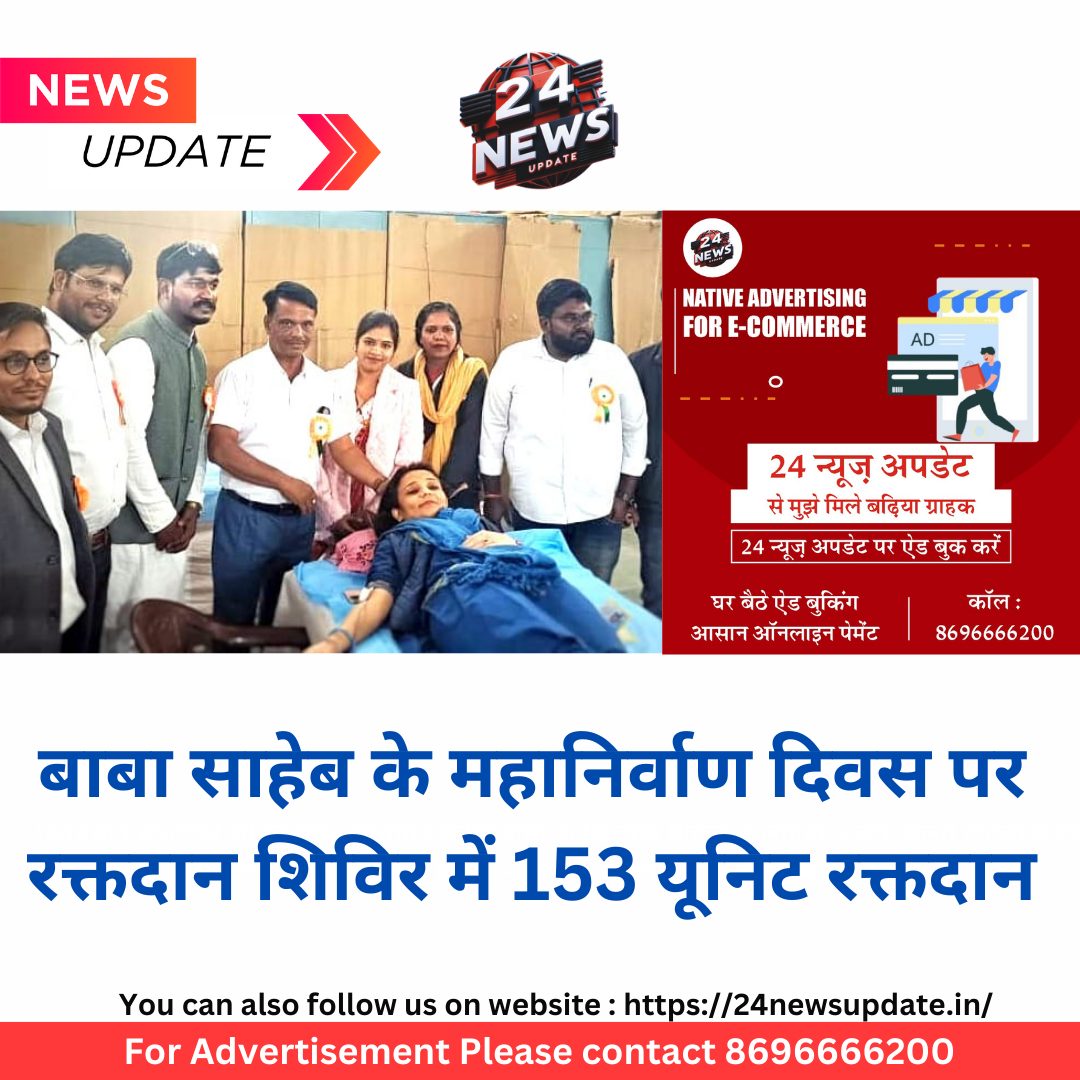 24 न्यूज़ अपडेट.ओम जैन शंभूपुरा। बाबा साहेब डॉ. भीमराव अम्बेडकर के निर्वाण दिवस पर उनके पुण्य स्मरण में डॉ. भीमराव अम्बेडकर ब्लड फाउंडेशन द्वारा विशाल रक्तदान शिविर एवं सम्मान समारोह का आयोजन किया गया।