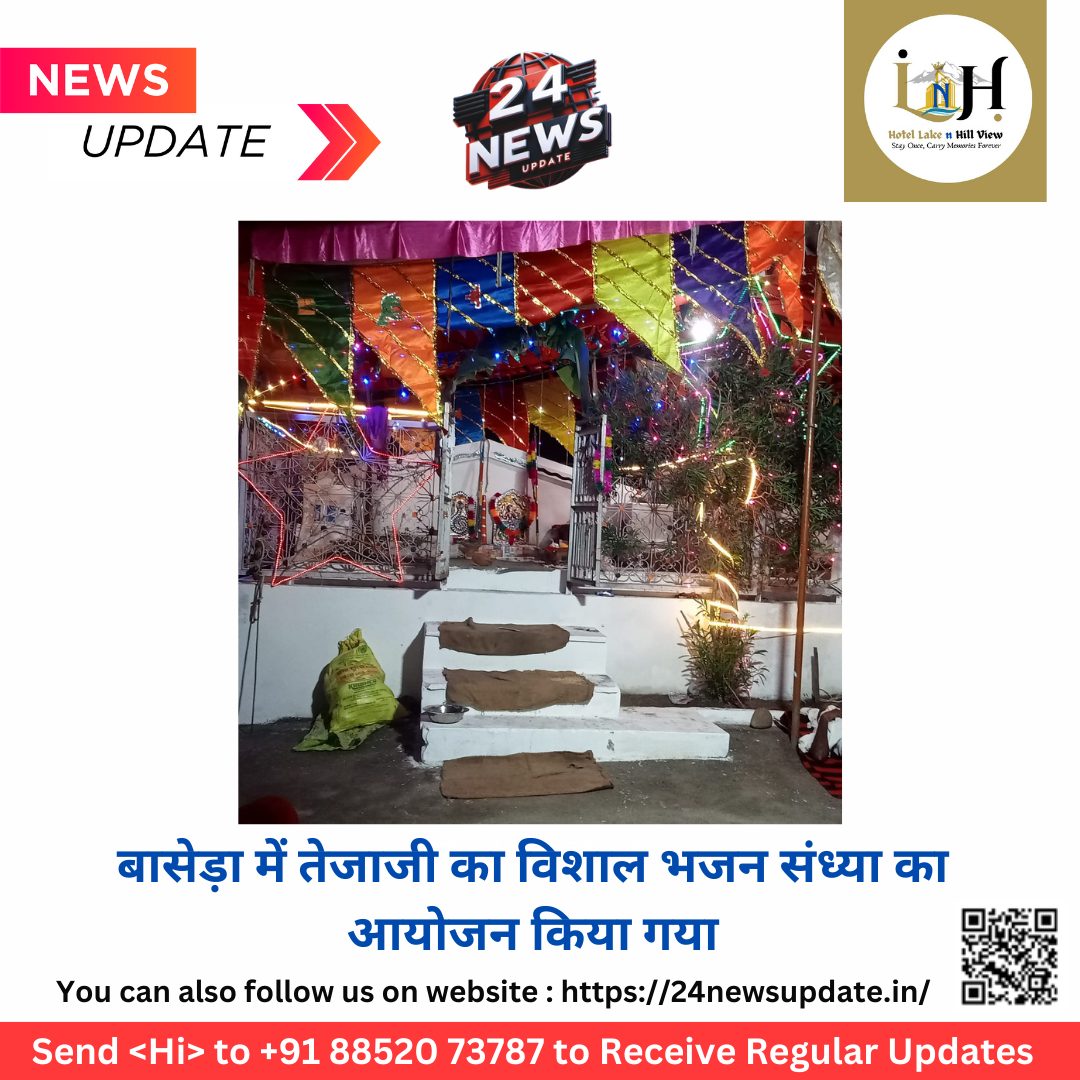 24 न्यूज़ अपडेट शाहपुरा. जिले के फुलिया कलां उपखंड के बासेड़ा में स्थित तेजाजी के थानक पर गुरुवार रात्री को विशाल भजन संध्या का आयोजन होगा।भजन संध्या में प्रसिद्ध कलाकार महावीर राव(भीलवाडा) के तेजाजी का भजन खेड़ा खेड़ा में पुजायो तेजाजी बासेड़ा में पस्तुति दे कर सभी को मनमोहित किया, ढोलक मास्टर दिलखुश बारेठ(प्राहेंडा), आर्गन मास्टर कैलाश राव (बचखेड़ा) पेड मास्टर ओम वैष्णव (फुलियाकलां) साउंड सिस्टम मास्टर श्रीगोपाल साउंड(बचखेडा) सहयोग प्रदान किया वहीं गायक कलाकार सुरेश राव के द्वारा लिलन महरो तेजल सिंगारो भजन प्रस्तुत किया भक्तजन नाचने लगे ग्रामीण ने बताया कि हर वर्ष की भाती इस वर्ष भी शुक्रवार को विशाल मेले का आयोजन होगा।जिसमे मेले में इन सभी गावों आमली हांकला, माली खेड़ा,बालापुरा,बचखेड़ा, रुगुनाथपुरा,देवपुरी,सयाना, इंदोकिया,पिपलाज,गोठड़ा, कजोडिया,बडला, आलोली,रोपा,बिंदौली मेले में पहुंचेगी गुरुवार रात्रि को विशाल रात्रि जागरण का कार्यक्रम हुवा जिसमें आसपास के सैकड़ो की संख्या में लोग रात्रि जागरण में भाग लेने के लिए पहुंचे।तेजाजी के मंदिर पर 5 दिनों से सतरंगी विद्युत साज सजावट की गई एवं रोजाना अल गोच्छा भजनों का आयोजन हो