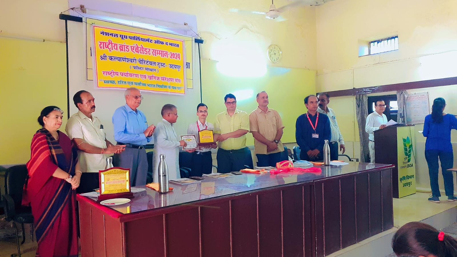24 न्यूज अपडेट फलासिया। नेशनल यूथ पार्लियामेंट ऑफ द भारत के मार्गदर्शन में फॉस्टर संस्थान/श्री कल्याणेश्वरी चैरिटेबल ट्रस्ट एवं राष्ट्रीय पर्यावरण एवं खनिज संरक्षण मंच के संयुक्त तत्वावधान ब्रांड एंबेसेडर में देशभर 101 प्रतिभागियों का राष्ट्रीय सम्मान ।