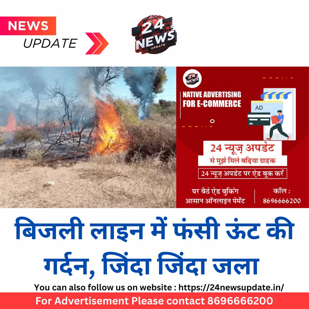 24 न्यूज अपडेट. स्टेट डेस्क। देसूरी की ग्राम पंचायत कोट सोलंकियांन के नया गांव में रविवार दोपहर भयानक हादसा हो गया। इस हादसे में राज्य पशु ऊंट की मौत हो गई। इस ऊंट की गर्दन बिजली के तारों में फंस गई तथा अचानक शॉर्ट सर्किट हो गया। इससे तारों में आग लग गई। आग की चपेट में आते ही ऊंट को करंट लग गया व उसकी जलकर मौके पर ही मौत हो गई। आसपास रखा पशुओं का चारा जलकर राख हो गया। इस भीषण घटना की सूचना मिलते ही मौके पर सैकड़ों की संख्या में लोग पहुंचे। देखते ही देखते आग फैल गई व पास में भेड़-बकरियों को चरा रहा पशुपालक फुसाराम देवासी ने भागकर अपनी जान बचाई। बाद में लोगों ने बिजली विभाग को सूचना दी व बिजली बंद करवाई। समाजसेवी दिलीप कुमार सैन ने मौके पर पहुंचकर पानी के टैंकर मंगवाए। ग्रामीणों और फायर टैंकर की मदद से करीब दो घंटे की मशक्कत के बाद आग पर काबू पाया जा सका।