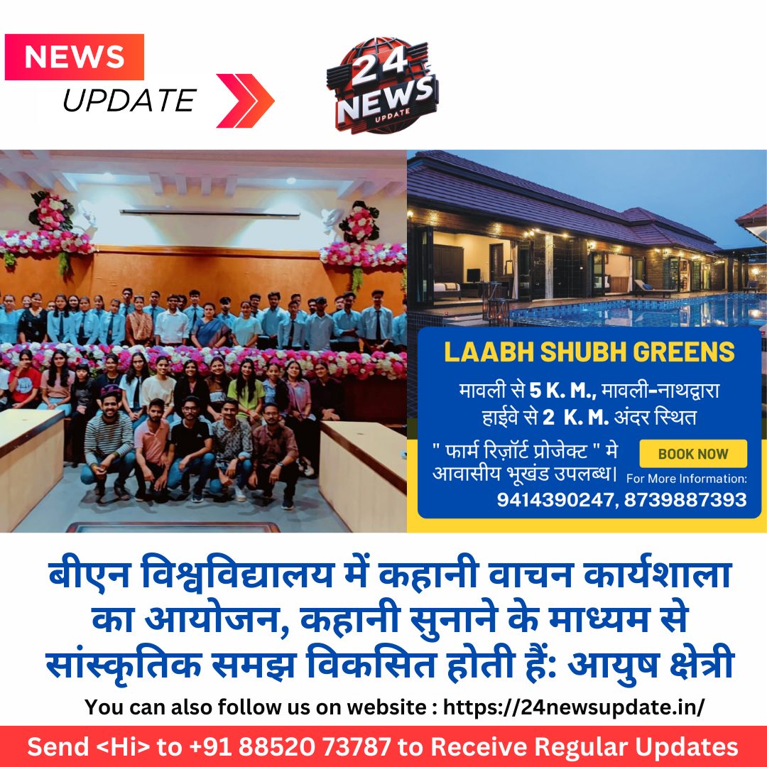 24 न्यूज़ अपडेट उदयपुर. भूपाल नोबल्स विश्वविद्यालय उदयपुर में कला, विज्ञान, वाणिज्य एवं प्रबंधन के विद्यार्थियों में सृजनात्मकता एवं अभिव्यक्ति की कला को सशक्त बनाने के लिए मानव पुस्तकालय कैफे के क्षेत्रीय केंद्र के सीईओ एवं अटल इनोवेशन मिशन नीति आयोग, वाराणसी उत्तरप्रदेश के प्रशिक्षक आयुष क्षेत्री द्वारा विशेष कहानी वाचन कार्यशाला का आयोजन किया गया। कार्यक्रम में विज्ञान संकाय की डीन डॉ रेणु राठौर, डीन फॉसएसएच डॉ शिल्पा राठौर एवं प्रबंधन संकाय के निदेशक डॉ रजनी अरोरा उपस्थित थे। कार्यशाला का संयोजन अंग्रेजी विभाग की विभागाध्यक्ष डॉ जयश्री सिंह ने किया एवं संयोजन डॉ मनीषा शेखावत ने किया तथा तकनीकी सहयोग विद्यार्थियों एवं विद्वानों द्वारा प्रदान किया गया। बीएन विश्वविद्यालय के संरक्षक अध्यक्ष डॉ महेंद्र सिंह आगरिया एवं रजिस्ट्रार डॉ एन एन सिंह ने अपने प्रेरक संबोधन से विद्यार्थियों को प्रेरित किया। कार्यशाला के अध्यक्ष बीएनयू के चेयरपर्सन प्रो एस.एस. सारंगदेवोत ने अपने संबोधन में प्रोत्साहित करते हुए कहा कि कार्यशाला ने प्रतिभागियों के लिए सिर्फ कहानी लेखन या कहानी सुनाने पर ही ध्यान केंद्रित नहीं किया है, बल्कि छात्रों को अपनी समग्र सोच और दृष्टिकोण को विकसित करने का माध्यम बनने की दिशा दी है। कार्यशाला का उद्देश्य रचनात्मकता को बढ़ावा देना, लेखन कौशल विकसित करना और आत्मविश्वास को सशक्त बनाना है, ताकि युवा अपनी कहानियों के माध्यम से अपनी पहचान और प्रभावी संचार कौशल बना सकें। कहानी के घटकों जैसे पात्रों का निर्माण, घटनाओं का क्रम, वातावरण का निर्माण और संवादों की प्रभावी प्रस्तुति सिखाई गई। प्रतिभागियों ने सीखा कि कैसे एक मजबूत कहानी बनाई जाए और इसे कैसे दिलचस्प बनाया जाए। कल्पनाशील लेखन अभ्यास, चरित्र निर्माण और दृश्य चित्रण जैसी विभिन्न रचनात्मक गतिविधियों के माध्यम से प्रतिभागियों को सिखाया गया कि कैसे अपनी कल्पना को कहानी में बदलना है और एक अनूठा दृष्टिकोण विकसित करना है। शोध छात्रा मनवी शर्मा ने सभी अतिथियों का अभिनंदन और स्वागत किया। ये जानकारी जनसंपर्क अधिकारी डॉ कमल सिंह राठौर ने दी.