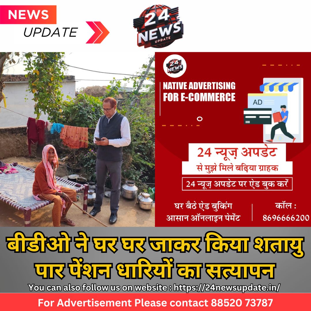 24 न्यूज़ अपडेट जयसमंद . जयसमंद पंचायत समिति के गातोड ग्राम पंचायत में वार्षिक पेंशन सत्यापन से वंचित शतायु पार पेंशन धारियों की पेंशन सत्यापन से वंचित रहने पर जयसमंद पंचायत समिति विकास अधिकारी दया चन्द यादव ने घर घर जाकर सत्यापन किया विकास अधिकारी दया चन्द ने बताया की गातोड़ ग्राम पंचायत निवासी शतायु पार दो महिला हिरकी बाई और दौली बाई के फिंगर,आइरिस नहीं आने के साथ ही पंचायत समिति मुख्यालय पर आकर सत्यापन करवाने में असमर्थ होने की जानकारी मिलने पर दोनों के घर जाकर जीवित होने का सत्यापन करते हुए बीडीओ की आईडी से ओटीपी के माध्यम से वार्षिक सत्यापन किया