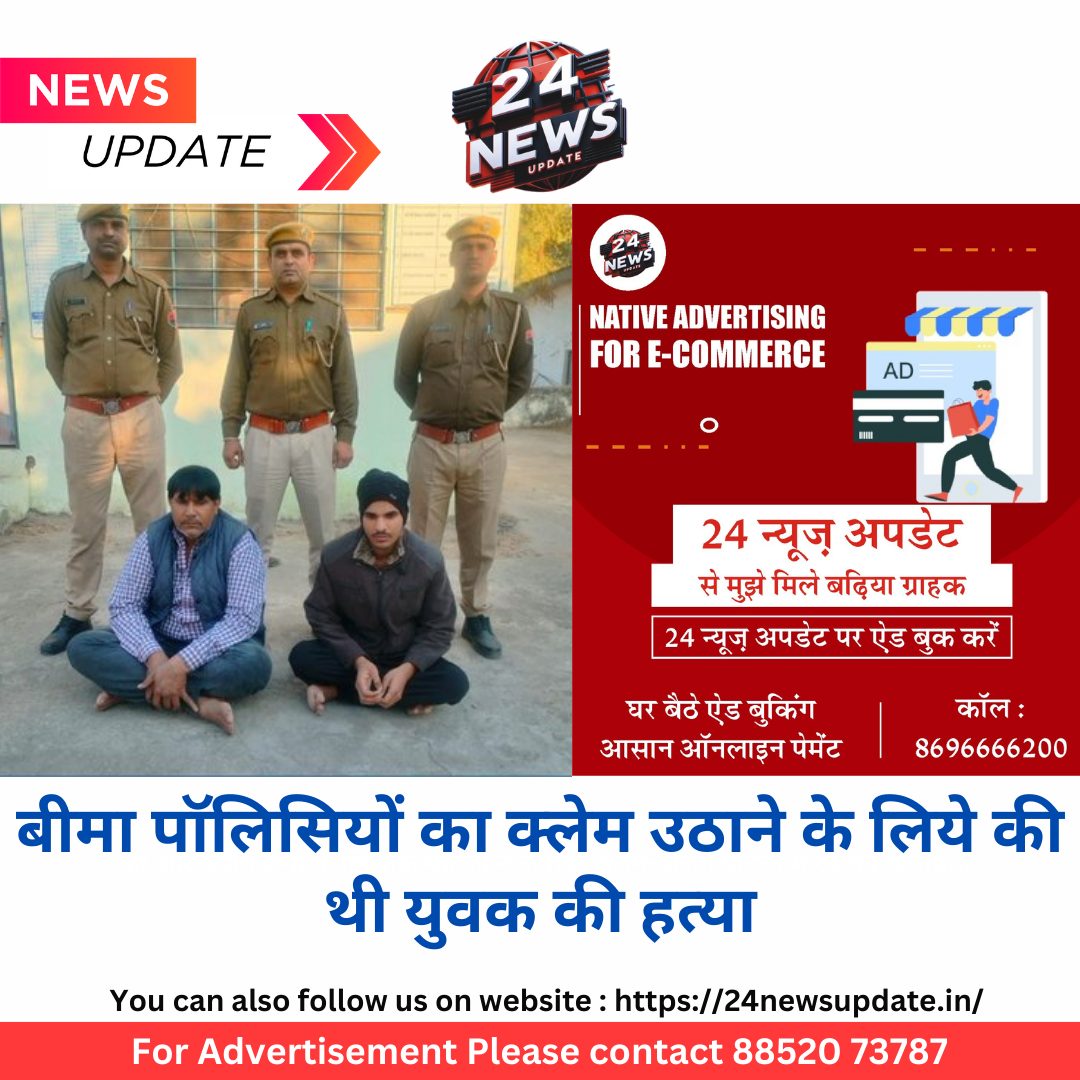 24 न्यूज अपडेट. चित्तौड़गढ़। बीमा पॉलिसी का क्लेम उठाने के लिए हत्या कोएक्सीडेंट का रूप दे दियां युवक की हत्या करने के मामले में भदेसर थाना पुलिस ने मृतक के पिता व भाई को गिरफ्तार कर लिया हैं पिता व भाई ने ही मृतक के नाम तीन चौपहिया व अन्य वाहन सहित कई बीमा पॉलिसियों का क्लेम उठाने की साजिश रच दी। हत्या कर घटना को दुर्घटना का स्वरूप दिया। पुलिस अधीक्षक सुधीर जोशी ने बताया कि 26 दिसम्बर को रेवलिया कला-मानपुरा के बीच चतरसिह के कुएं के पास मोटर साईकिल चालक चम्पालाल गुर्जर एवं पुत्र राजेश गुर्जर मान्दलदा हाल चामटी खेड़ा की अचानक जंगली सूअर के दौड़ जाने सेएक्सीडेंट का मामला सामने आया। थाना भदेसर पर सूचना दी व राजेश गुर्जर की मौत हो जाने पर शव को शवगृह जिला चिकित्सालय में रखवाया।घायल चम्पालाल गुर्जर का अस्पताल में उपचार किया गया। 27 दिसम्बर को मृतक राजेश गुर्जर के भाई ने रिपार्ट दी। भदेसर थाना पुलिस ने जब मृतक का पंचायतनामा बनाया ते गले में सामने की तरफ रस्सी का फंदा लगा होने जैसे निशान मिले। मेडिकल बोर्ड द्वारा पॉस्टमॉर्टम करवाया गया। जांच एएसआई सुभाष चंद्र ने की। धानाधिकारी भदेसर मोतीराम के नेतृत्व में जांच टीम बनी। टीम ने मुकुल गुर्जर एवं मोटरसाईकिल चालक चम्पालाल गुर्जर के मोबाईल नम्बरों की कॉल डिटेल ली। जानकारी में आया कि चम्पालाल ने लड़के राजेश गुर्जर के नाम पर एक महिन्द्रा स्कोर्पियों कार, महिन्द्रा थार, महिन्द्रा केम्पर पिकअप एवं अन्य वाहन एवं बीमा पॉलिसियां करवा रखी है। राजेश गुर्जर की हत्या कर एक्सीडेण्ट की घटना बताकर मृतक राजेश गुर्जर की बीमा पॉलिसियों पर क्लेम उठाने की योजना बनाना सामने आया। चम्पालाल पिता छोगालाल गुर्जर एवं मुकुल पिता चम्पालाल गुर्जर निवासी मान्दलदा थाना चन्देरिया हाल चामटी खेड़ा की तलाश कर पूछताछ की तो आरोपी चम्पालाल गुर्जर ने राजेश की हत्या करना एवं हत्या के बाद मुकुल द्वारा पिता के साथ मिलकर षड्यन्त्र पूर्वक एक्सीडेण्ट की घटना बताने के लिये शव को चम्पालाल के बताये अनुसार मान्दलदा खेत से स्कोर्पियो कार से रेवलिया कला मानपुरा के बीच चतरसिह के कुएं के पास ले जाना बताया। यहां पर चम्पालाल द्वारा लाश को स्कोर्पियों कार से उतार सिर फोड़कर मोटरसाईकिल से घटना स्थल पर एक्सीडेण्ट हो जाने से गिरने का स्वांग रचा। घटना को एक्सीडेण्ट को घटना बताकर रिपोर्ट दी। आरोपी पिता चम्पालाल पुत्र छोगालाल गुर्जर उम्र 52 साल एवं आरोपी भाई मुकुल पुत्र चम्मालाल गुर्जर उम्र 25 साल को गिरफ्तार किया गया।