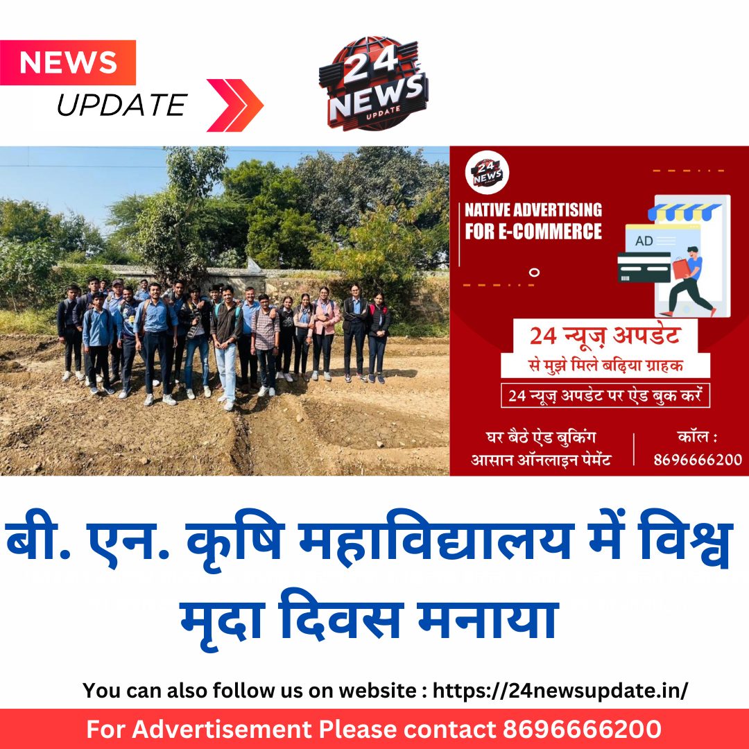 24 न्यूज अपडेट. उदयपुर: बी. एन. कृषि महाविद्यालय द्वारा गुरुवार को विश्व मृदा दिवस मनाया गया। इस कार्यक्रम के दौरान महाविद्यालय के अधिष्ठाता डॉ. फतह लाल शर्मा ने विद्यार्थियों को बताया कि मानव का स्वास्थ्य मिट्टी स्वास्थ्य के उपर निर्भर करता है। मिट्टी का स्वास्थ्य की देखभाल हम सभी की जिम्मेदारी है तथा विभिन्न फसलो की पैदावार के दौरान रासायनिक उर्वरकों को कम से कम उपयोग करना चाहिए एवं जैविक खादों का उपयोग अधिक से अधिक करना चाहिए।अधिष्ठाता ने विद्यार्थियों से आव्हान किया कि सभी विद्यार्थियों को अपने खेत में जैविक खादों का उपयोग हेतु अपने माता-पिता व किसानों को बतावे। इस अवसर पर सभी छात्रों को यह भी बताया कि विश्व मृदा दिवस की शुरुआत थाईलैण्ड के राजा भूमिबोल अदुत्यादेज की पहल पर हुई। रुसी भूविज्ञानी, भूगोलवेत्ता और मृदा वैज्ञानिक वसीली डोकुचेव को व्यापक रुप से मृदा विज्ञान के जनक के रुप में जाना जाता है। वे पहले व्यक्ति थे जिन्होनें मिट्टी को जीवित प्रणाली माना और मिट्टी को एक जैविक विज्ञान के रुप मे देखा। विश्वविद्यालय के चेयरपर्सन कर्नल प्रो शिव सिंह सारंगदेवोत, प्रेसीडेंट डॉ एम ऐस आगरिया, संस्थान प्रबंध निदेशक मोहब्बत सिंह राठौड़ और विश्वविद्यालय कुलसचिव डॉ निरंजन नारायण सिंह राठौड़ ने बधाई देते हुए अपने संदेश में कहा की कार्यक्रम का उद्देश्य हमारी मिट्टी के लिए आवश्यक खतरों के बारे में शिक्षित करना और जागरूकता बढ़ाना है, जीवन के लिए मिट्टी का संरक्षण बेहद जरूरी है। यह कार्यक्रम एन.एन.एस. के तत्वाधान में कार्यक्रम अधिकारी डॉ. पी. एस. राव के देखरेख में आयोजित किया गया तथा कार्यक्रम के दौरान उन्होनें मिट्टी के महत्व के बारे विस्तृत जानकारी प्रदान की। कार्यक्रम का संचालन सुश्री प्रेक्षा नागर ने किया