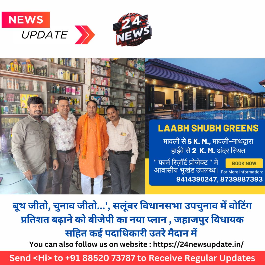 24 न्यूज़ अपडेट सलूंबर. राजस्थान विधानसभा उपचुनाव में सातों सीटें जीतने का लक्ष्य तय करने वाली बीजेपी बूथ मैनेजमेंट पर खासा जोर दे रही है. इसके लिए पार्टी ने हर बूथ पर बूथ कमेटी का गठन किया है और हर बूथ पर मतदाता सूची के जरिए हर घर के एक-एक मतदाता की पहचान की जा रही है ।पार्टी बूथ समिति के सदस्यों और कार्यकर्ताओं के समूहों को भी प्रेरित करने का प्रयास कर रही है ताकि मतदाताओं को समूहों में अपने घरों से बाहर निकलने के लिए प्रेरित किया जा सके.