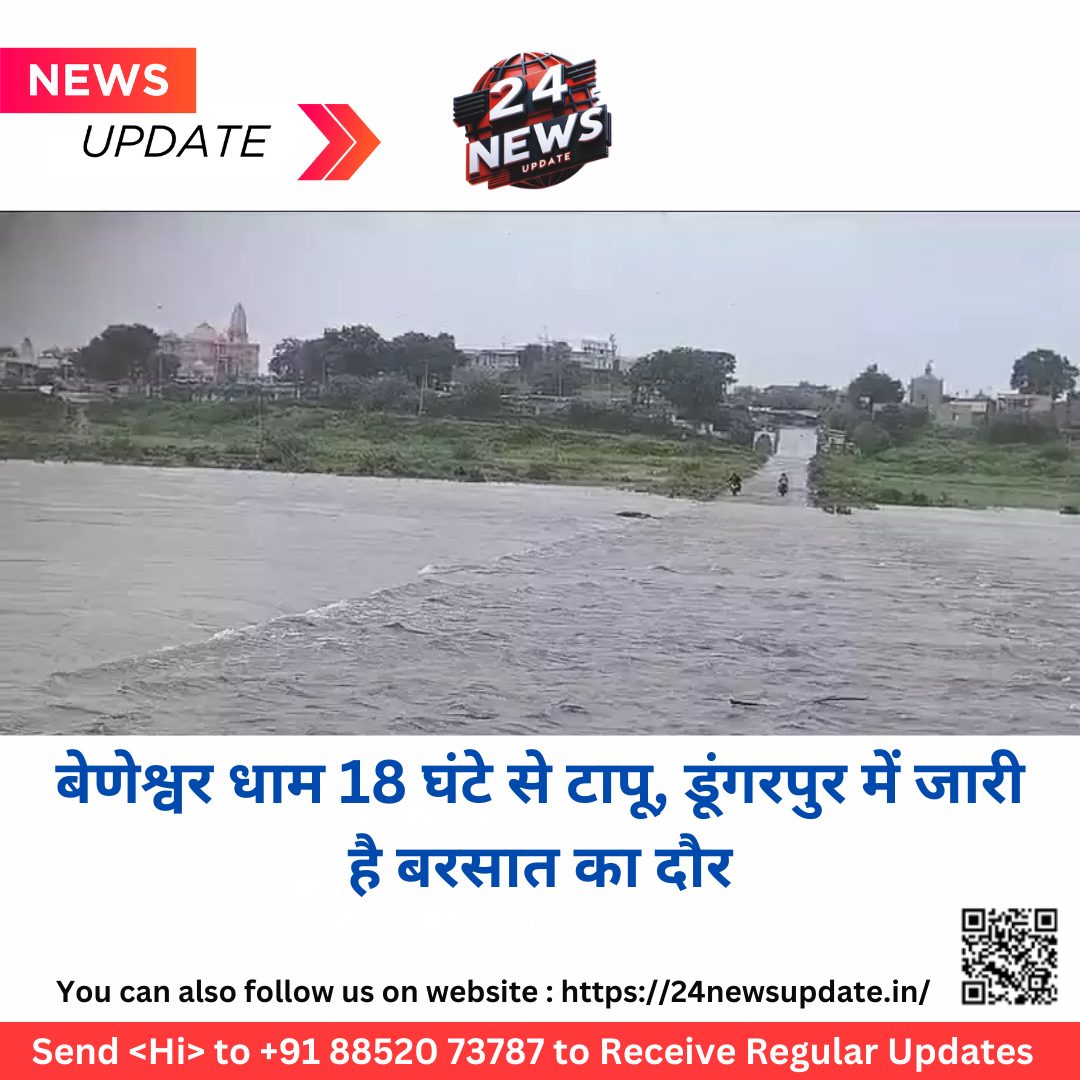 24 न्यूज अपडेट. डूंगरपुर। डूंगरपुर में मानसून का महापड़ाव जारी है। धंबोला और वेंजा में 24 घंटे में रिकॉर्ड साढ़े 5 इंच बारिश दर्ज की गई है। रुक-रुक कर कभी तेज, कभी हल्की और रिमझिम बारिश का दौर जारी है। पिछले 24 घंटे में धंबोला और वेंजा में रिकॉर्ड साढ़े 5 इंच बारिश दर्ज की गई। बारिश से छोटे एनिकट लबालब हो गए हैं। बांध तालाबों में भी पानी आवक बढ़ी है। डूंगरपुर में शनिवार से ही बरसात का दौर चल रहा है। बरसात की वजह से खेत पानी से लबालब हो गए हैं, कुछ एनिकट छलकने लगे हैं।जन जन की आस्था के केंद्र बेणेश्वर धाम पर पिछले 18 घंटे से संपर्क टूटा हुआ है, धाम टापू बन गया है। धाम पर सोम, माही और जाखम नदियों का पानी तीनों पुलों पर वेग के साथ बह रहा है। साबला, वालाई और बांसवाड़ा पुलिया पर 2 से 3 फीट तक का पानी बह रहा है। बेणेश्वर पर आवाजाही पूरी तरह से बंद हो गई है। धाम पर पुजारी सहित कुछ व्यापारी रुके हैं। सभी लोग सुरक्षित हैं और उनके लिए खाने पीने के तमाम इंतजाम धाम पर किए गए हैं। पुलिस और प्रशासन की ओर से भी तीनों पुलों पर लोगों को अलर्ट किया गया है। डूंगरपुर जिले में मंगलवार सुबह 8 बजे तक 24 घंटों में औसत ढाई इंच (67 एमएम) बारिश रिकॉर्ड की गई है। सबसे ज्यादा धंबोला में साढ़े 5 इंच (140 एमएम) बरसात हुई है। वहीं वेजा सवा 5 इंच (135 एमएम), चिखली में 85 एमएम, ओबरी में 80 एमएम, गलियाकोट में 70 एमएम, गामड़ी अहाड़ा में 64 एमएम, फलोज में 61 एमएम, देवल में 60 एमएम, डूंगरपुर में 59 एमएम, सागवाड़ा में 54 एमएम, आसपुर में 33 एमएम, गणेशपुर में 50 एमएम, बनकोड़ा में 44 एमएम, साबला में 52 एमएम, निठाउवा में 25 एमएम बारिश दर्ज हुई है।
