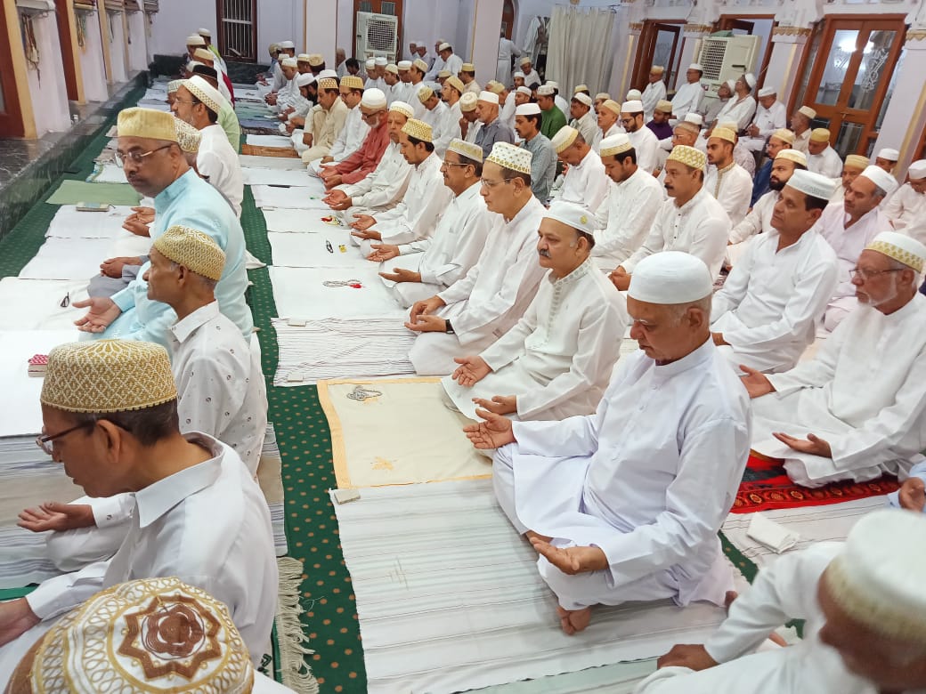 24 न्यूज अपडेट उदयपुर। इस्लमी कैलेंडर के आखिरी माह ज़िल्हज की दस तारीख यानि आज 16 जून 2022 बरोज़ रविवार बोहरा समुदाय ईद उल अज़हा का त्यौहार मनाया गया। सुधारवादी बोहरा समुदाय से संबद्ध दाऊदी बोहरा जमात के प्रवक्ता मंसूर अली ओड़ावाला ने बताया की आज रविवार ईद उल अज़हा की विशेष नमाज़ सुबह 6 बजे बोहरवाड़ी स्थित रसूलपुरा मस्जिद, वजीहपुरा मस्जिद, मोहियदपुरा मस्जिद, छोटी बोहरवाड़ी स्थित खानपुरा मस्जिद, लोहा बाजार स्थित चमनपुरा मस्जिद, खारोल कॉलोनी एवं पुला स्थित हाल में अदा की गई। ईद उल अज़हा की नमाज़ के दौरान अच्छी बरसात और देश में अमन चैन के लिए दुआ की गई। जहाँ ईद की नमाज़ के बाद घरो में मिठाइयाँ बनाने और क़ुरबानी का सिलसिला शुरू हुआ वहीँ लोगो ने एक दूसरे से गले मिलकर ईद की मुबारकबादी पेश करते हुए हर्षोल्लास के साथ ईद मनाई। दाऊदी बोहरा जमाअत के सचिव ज़ाकिर पंसारी ने बताया कि ईद उल अज़हा के मुबारक मौके पर आज बोहरवाड़ी स्थित जमाअत खाना में सामूहिक नियाज़ का आयोजन किया गया है। जिसमे समाज के सभी लोगो ने बढ़ चढ़कर हिस्सा लिया।