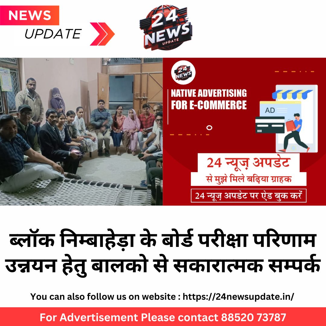 24 न्यूज अपडेट. निम्बाहेडा। जिला शिक्षा अधिकारी अरविंद कुमार मूंदड़ा एवं उनकी टीम द्वारा फाचर अहिरान,बांसा व रसूलपुरा के बोर्ड परीक्षार्थियों से सम्पर्क कर प्रेरणादायी संबलन प्रदान किया ।