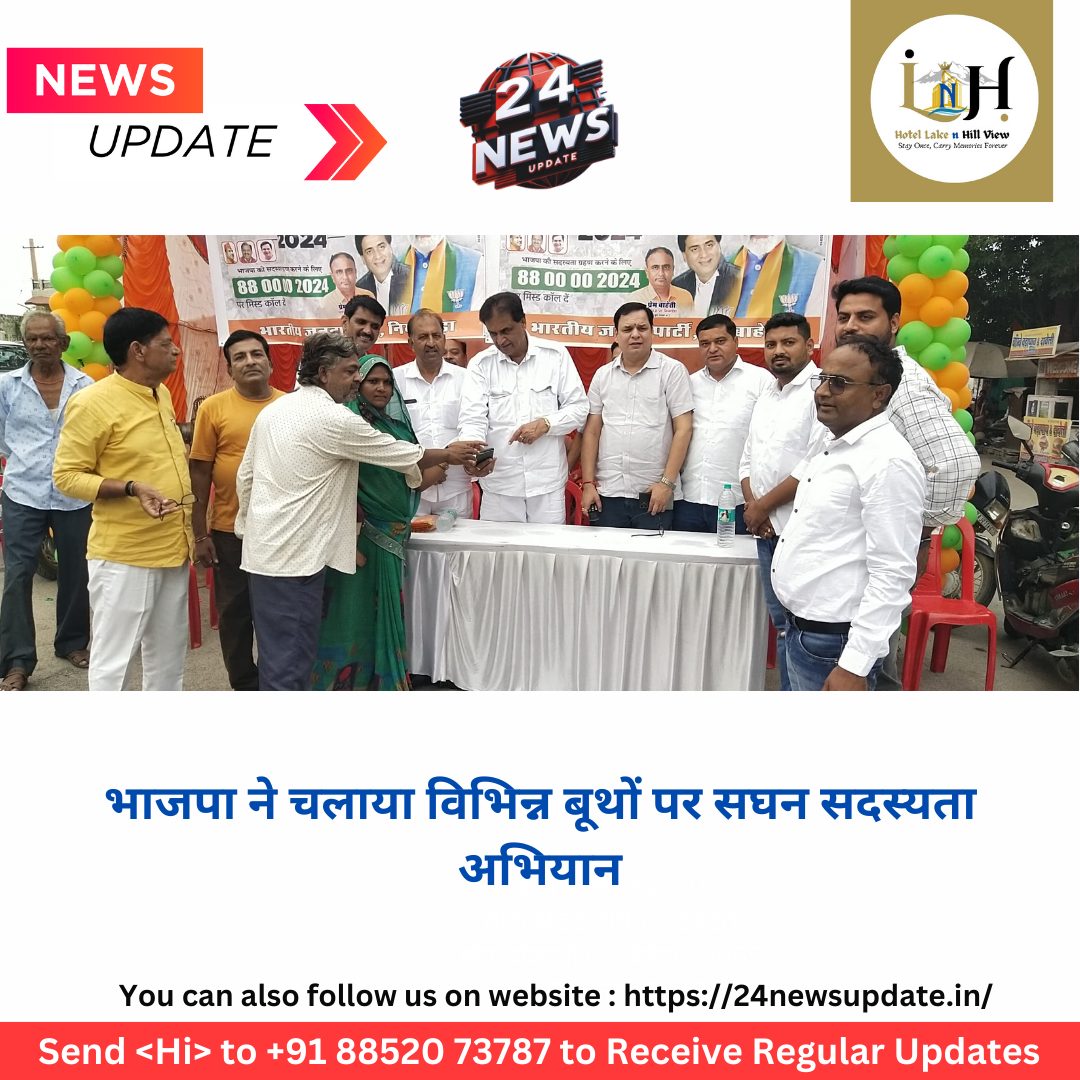 24 न्यूज़ अपडेट निम्बाहेड़ा। भारतीय जनता पार्टी के देशव्यापी वृहद सदस्यता अभियान के अंतर्गत रविवार को नगर के विभिन्न बूथों पर पूर्व स्वायत शासन मंत्री एवं विधायक श्रीचंद कृपलानी के निर्देशन एवं पूर्व विधायक अशोक नवलखा व नगर अध्यक्ष नितिन चतुर्वेदी के नेतृत्व में सघन सदस्यता अभियान चलाया गया। इसके अंतर्गत नगर के कल्याण चौक पर आरके कॉलोनी, आदर्श कॉलोनी, कर्मचारी कॉलोनी क्षेत्र सहित बूथ नम्बर 87 एवं वार्डवासियों ने एक अस्थाई बूथ लगाकर आमजन को भारतीय जनता पार्टी का सदस्य बनाया। इस अवसर पर विधायक कृपलानी, पूर्व विधायक अशोक नवलखा, नगर अध्यक्ष नितिन चतुर्वेदी, भाजपा ओबीसी प्रकोष्ठ प्रदेश मंत्री एवं जिप सदस्य गब्बर सिंह अहीर, पूर्वी मंडल अध्यक्ष अशोक जाट, पार्षद मयंक अग्रवाल, प्रेम बाहेती, भाजयुमो नगर अध्यक्ष कपिल चौधरी महामंत्री आशीष टांक ने सदस्यता अभियान के दौरान मौके पर आमजन को ऑनलाइन मोबाइल के माध्यम से भाजपा की सदस्यता ग्रहण करवाई। पार्षद प्रेम बाहेती ने बताया कि आज आयोजित इस बूथ कार्यक्रम के दौरान भाजपा के करीब 100 से अधिक सदस्य बनाये गए।