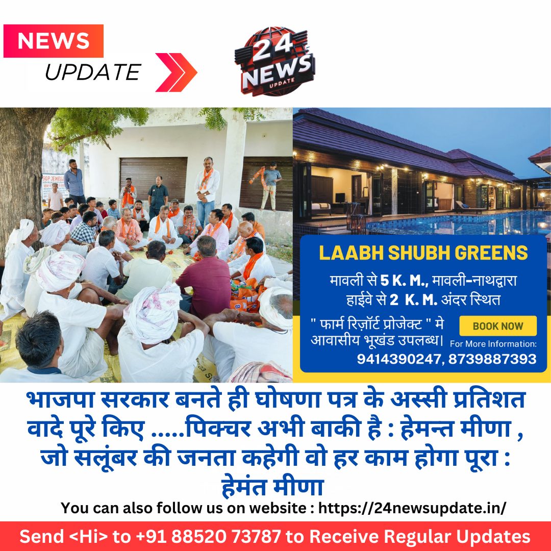 प्रभारी मंत्री हेमंत मीणा ने कहा की राज्य की भजन लाल शर्मा सरकार ने महज एक वर्ष में ही चुनावी घोषणा पत्र के अस्सी प्रतिशत वादे पूरे किए और विकास की पूरी पिक्चर बाकी हे । चार सालो में सलूंबर की जनता बोलेगी और काम होंगे ,सरकार केंद्र की मोदी सरकार के हर जनजाति गांव उन्नत गांव के संकल्प को पूरा करने के लिए कटिबद्ध है ।