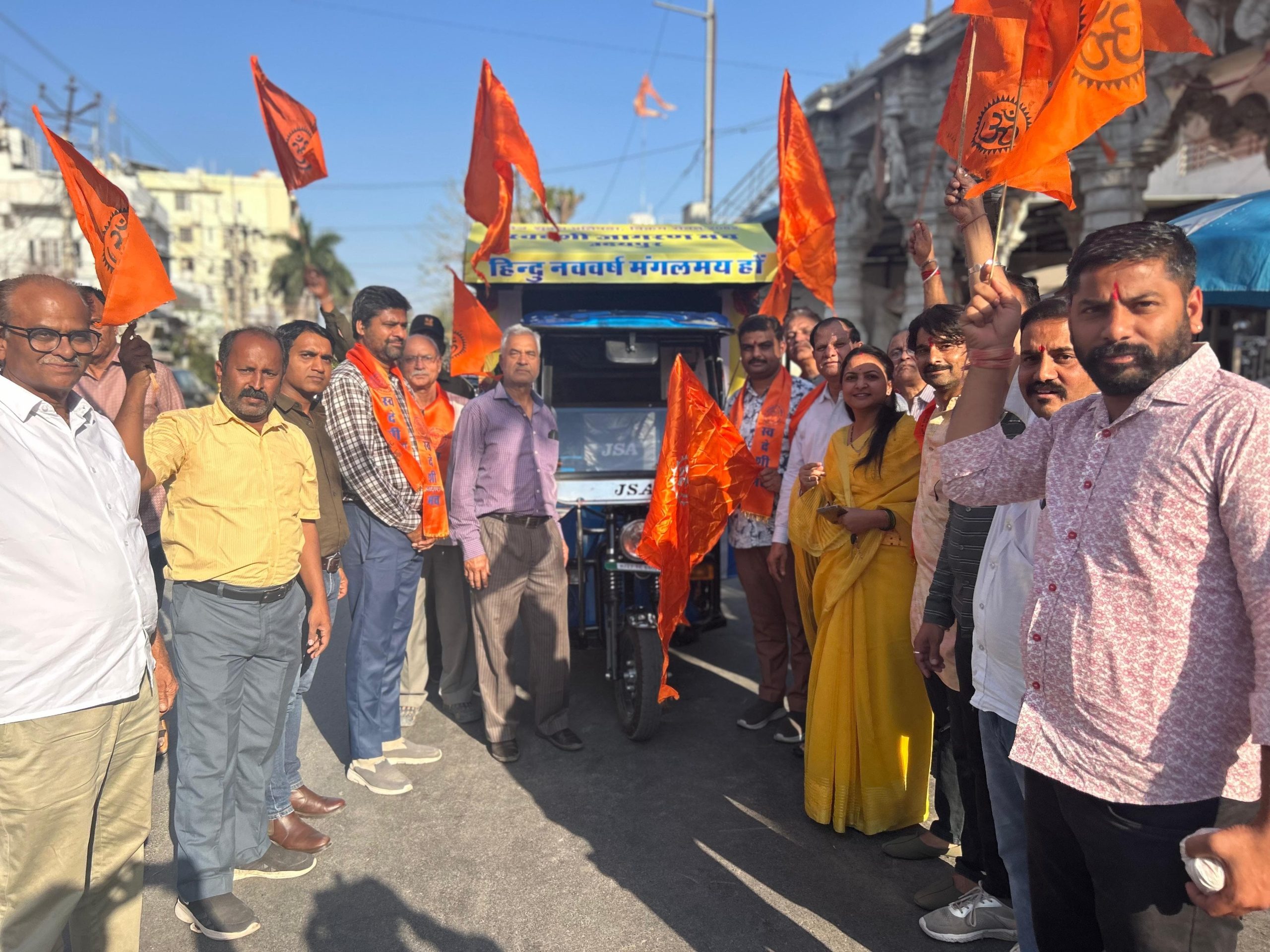 प्रचार रथ शहर के विभिन्न प्रमुख चौराहों, बाजारों और कॉलोनियों में जाकर आमजन को भारतीय नववर्ष से जुड़े आयोजनों में सहभागिता के लिए आमंत्रित करेगा। कार्यक्रम में भजन, वैदिक मंत्रोच्चार एवं मंगल गीतों के साथ ध्वजारोहण कर रथ को रवाना किया गया। समिति के पदाधिकारियों ने अधिक से अधिक लोगों से आगामी नववर्ष कार्यक्रमों में शामिल होने का आह्वान किया।