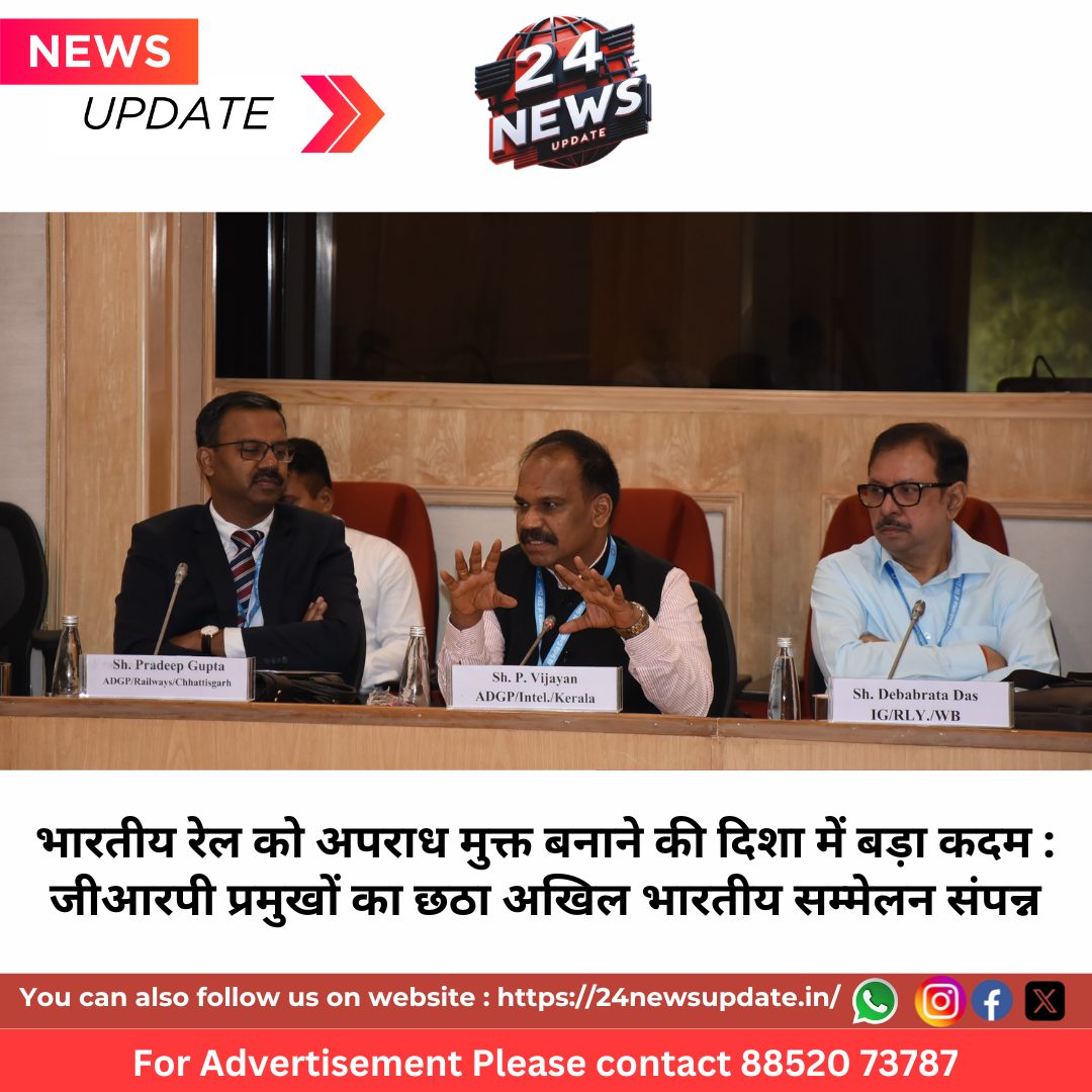 24 News Update नई दिल्ली। रेलवे को अपराध मुक्त और यात्रियों के लिए अधिक सुरक्षित बनाने की दिशा में रेलवे सुरक्षा बल (आरपीएफ) और जीआरपी के शीर्ष अधिकारियों का छठा अखिल भारतीय सम्मेलन विज्ञान भवन में सफलतापूर्वक संपन्न हुआ। सम्मेलन में यात्री सुरक्षा, अपराध नियंत्रण की रणनीतियों और रेलवे पुलिसिंग के आधुनिकीकरण पर विस्तार से चर्चा की गई। रेलवे बोर्ड के अध्यक्ष एवं मुख्य कार्यकारी अधिकारी सतीश कुमार ने सम्मेलन का उद्घाटन किया। अपने संबोधन में उन्होंने देशभर के करोड़ों रेल यात्रियों की सुरक्षा सुनिश्चित करने के लिए जीआरपी और आरपीएफ के बीच सहयोगात्मक दृष्टिकोण पर बल दिया। उन्होंने ‘नन्हे फरिश्ते’, ‘ऑपरेशन आहट’ और ‘मेरी सहेली’ जैसी अभियानों की सराहना करते हुए इन्हें और प्रभावी बनाने की आवश्यकता बताई।