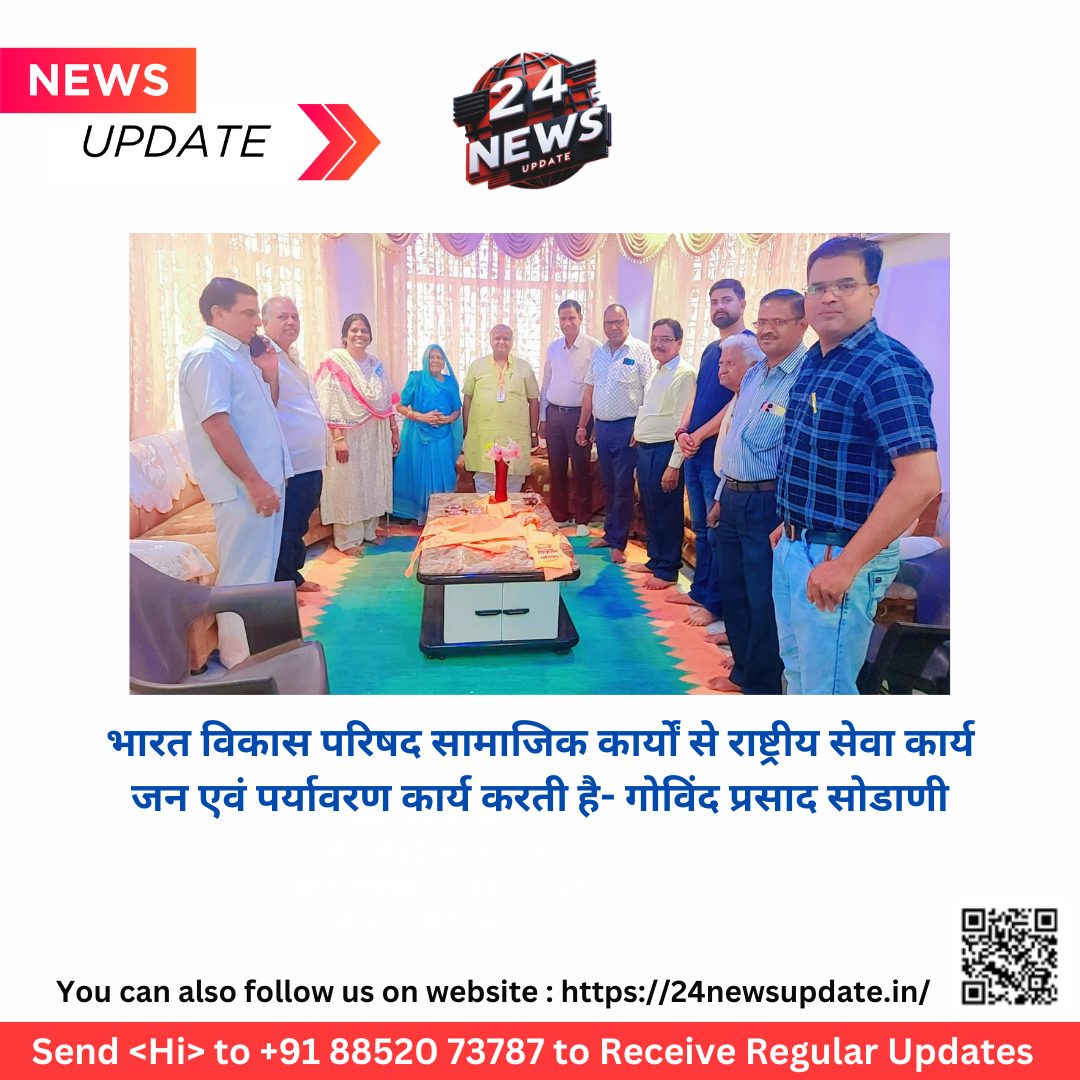 24 न्यूज़ अपडेट शाहपुरा. दिनांक 25 अगस्त 2024 को भारत विकास परिषद के प्रांतीय अध्यक्ष गोविंद प्रसाद सोडाणी ने शाहपुरा भारत विकास परिषद शाखा की प्रवास किया।