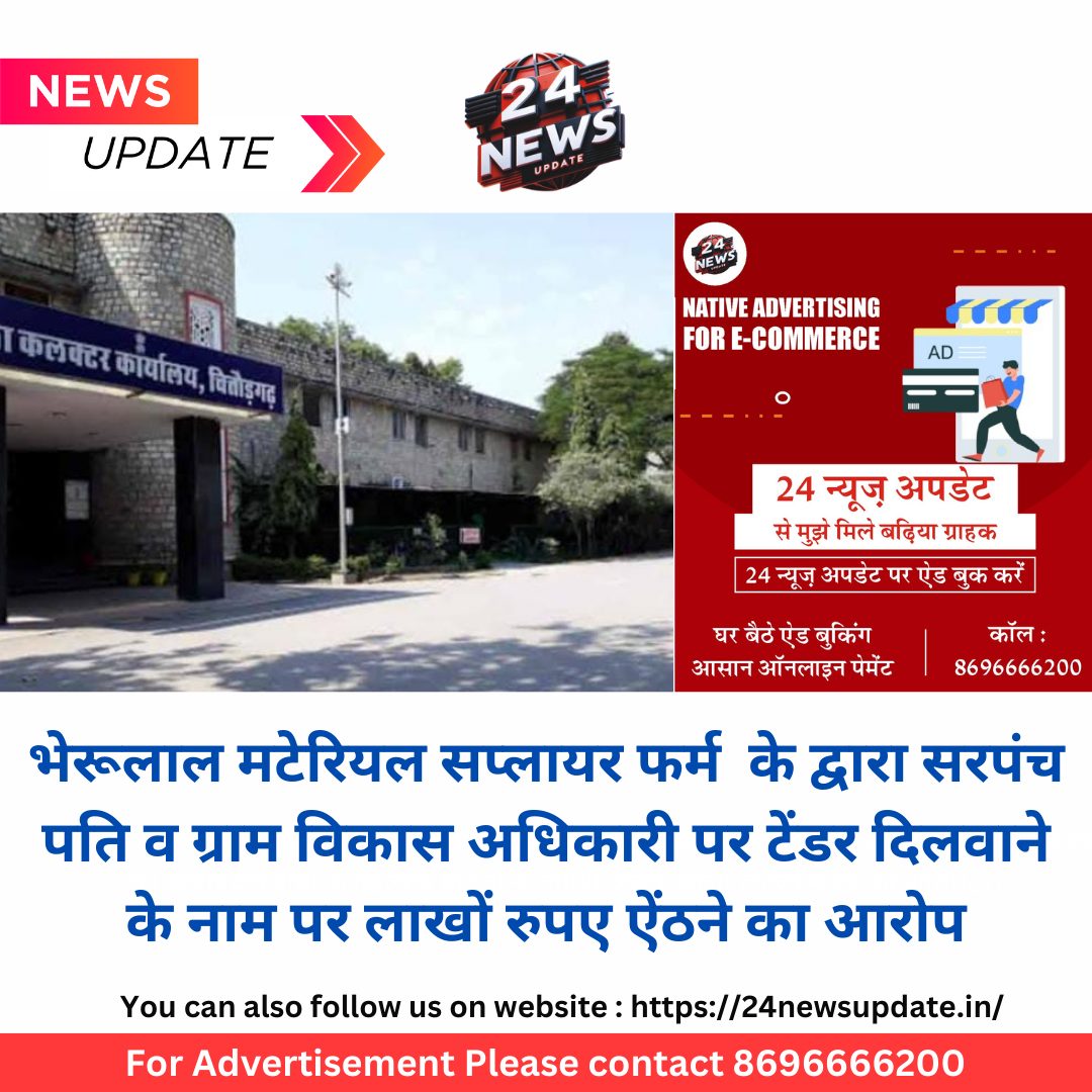 24 न्यूज़ अपडेट.पीड़ित व्यक्ति ने सरपंच पति व तहसील से लेकर ग्राम विकास अधिकारी तक इन सभी अधिकारियों ने मिलीभगत करके रकम ऐठी गई टेंडर देने के नाम जबकि टेंडर किसी और फर्म को दे दिया गया जब मुझे इस मामले का पता चला तो मेरे पूछने पर कुछ भी जवाब नहीं दिया और टेंडर दिलवाले का कमीशन वह मूल राशि वापस नहीं लौटी गई मेरे द्वारा बार बार कहने पर सरपंच व तहसीलदार और ग्राम विकास अधिकारियों के द्वारा मेरी बातों का आना कानी करते रहे कि ज़िला चित्तौड़गढ़ ग्राम पंचायत गंगरार, साडास, तुम्बडिया एवं सादी द्वारा निर्माण सामग्री स्पलाई करने हेतू टेण्डर निकाला गया था उक्त टेण्डर निकाला गया जिसकी नियमानुसार सूचना व निविदा राष्ट्रीय समाचार पत्र में प्रकाशित करनी थी परन्तु उक्त ग्राम पंचायतो द्वारा अपने चहेतो व मिलने वालो को अवैध लाभ पहुंचाने की गरज से टेण्डर में धांधली करते हुवे टेण्डर खोले गये।
