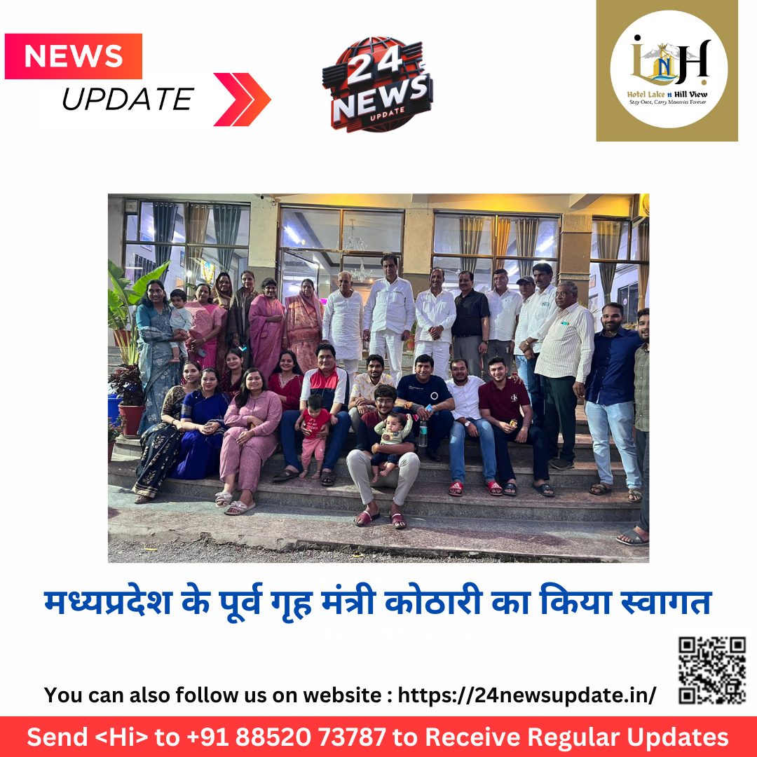 पूर्व गृह मंत्री कोठारी परिवार सहित रतलाम से भीलवाड़ा जैन आचार्य श्री राम मुनि जी म.सा. के दर्शनार्थ जा रहे थे, इस दौरान मार्ग में नीमच-चित्तौड़ बाईपास पर एक होटल पर विधायक कृपलानी, पूर्व विधायक अशोक नवलखा, भाजपा अध्यक्ष नितिन चतुर्वेदी, पूर्व महामंत्री वीरेश चपलोत, भाजपा ओबीसी प्रकोष्ठ प्रदेश मंत्री एवं जिप सदस्य गब्बर सिंह अहीर, पूर्वी मण्डल अध्यक्ष अशोक जाट, नगर महामंत्री देवकरण समदानी, कमलेश बनवार, कमलेश बुनकर, नगर उपाध्यक्ष महिपाल सिंह राणावत, भाजयुमो नगर महामन्त्री आशीष टांक ने गुलदस्ता भेंट कर, उपरना ओढाकर एवं मोतियों की माला पहनाकर स्वागत किया। पूर्व गृह मंत्री कोठारी एवं परिवार की मेजबानी पूर्व नगर महामंत्री वीरेश चपलोत , शौर्य चपलोत , सौम्य चपलोत एवं परिवार के द्वारा की गई।