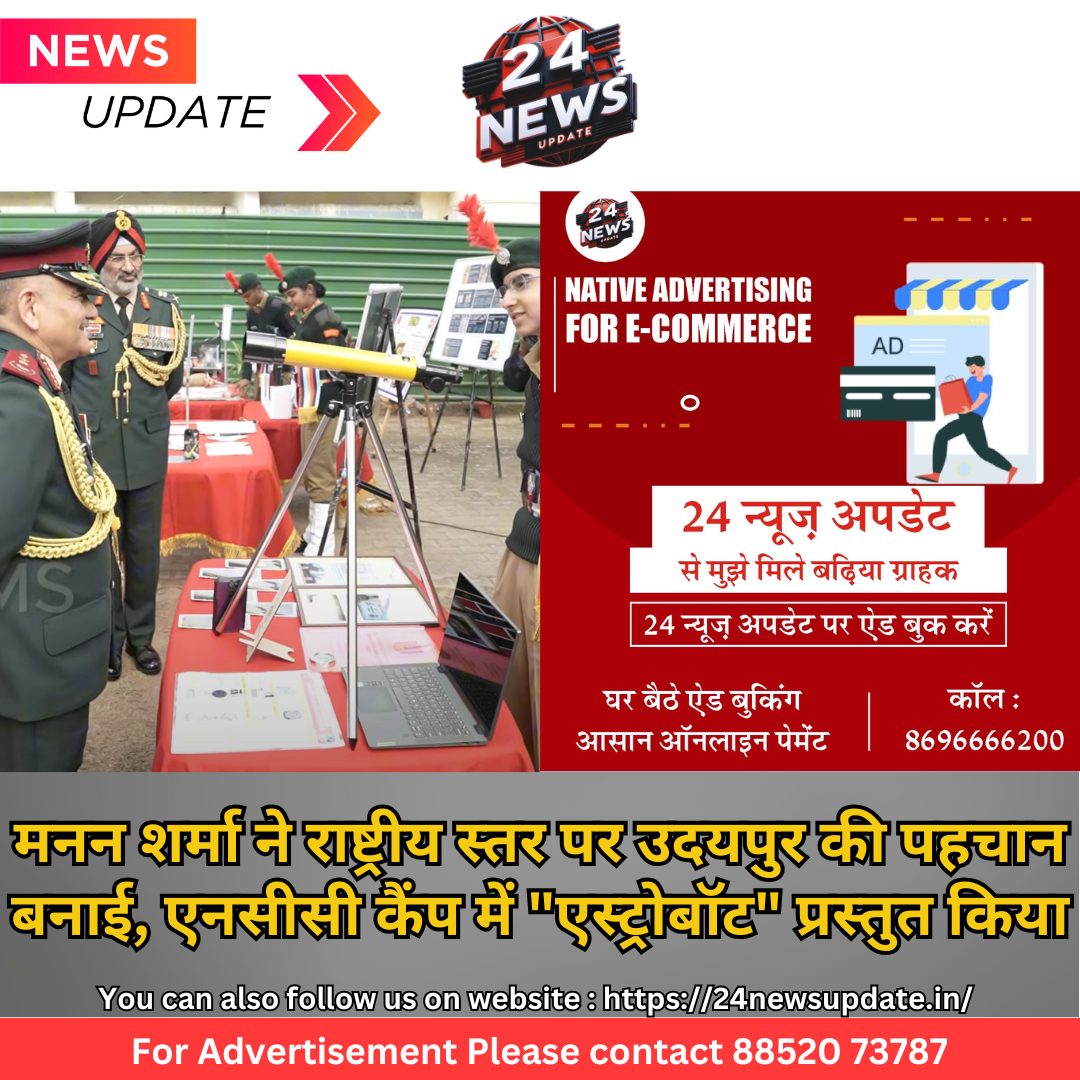 24 न्यूज़ अपडेट नई दिल्ली : एनसीसी सार्जेंट मनन शर्मा, राष्ट्रीय कैडेट कोर (एनसीसी) के सदस्य और कक्षा 10 के छात्र, ने एनसीसी गणतंत्र दिवस कैंप (आरडीसी) 2025 के आइडिया एंड इनोवेशन कॉम्पटीशन में अपने अभिनव ऐप “एस्ट्रोबॉट” को प्रस्तुत कर राष्ट्रीय स्तर पर अपनी प्रतिभा का प्रदर्शन किया। देशभर से चुने गए 56 अभिनव विचारों में मनन का प्रोजेक्ट अपनी अनूठी सोच और शौकिया खगोलविदों को समर्थन देने के दृष्टिकोण के लिए विशेष रूप से सराहा गया।