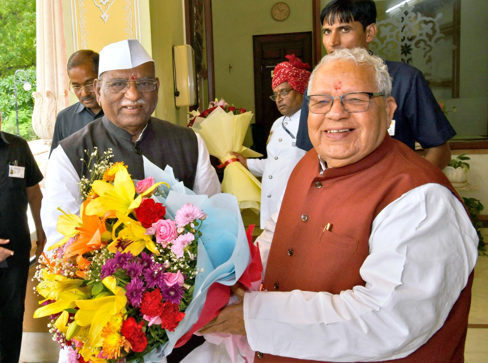 मनोनीत राज्यपाल श्री हरिभाऊ किसनराव बागडे ने राजभवन पहुंचने के बाद मंगलवार को राज्यपाल श्री कलराज मिश्र से भी मुलाकात की। राज्यपाल श्री मिश्र ने उनकी अगवानी की