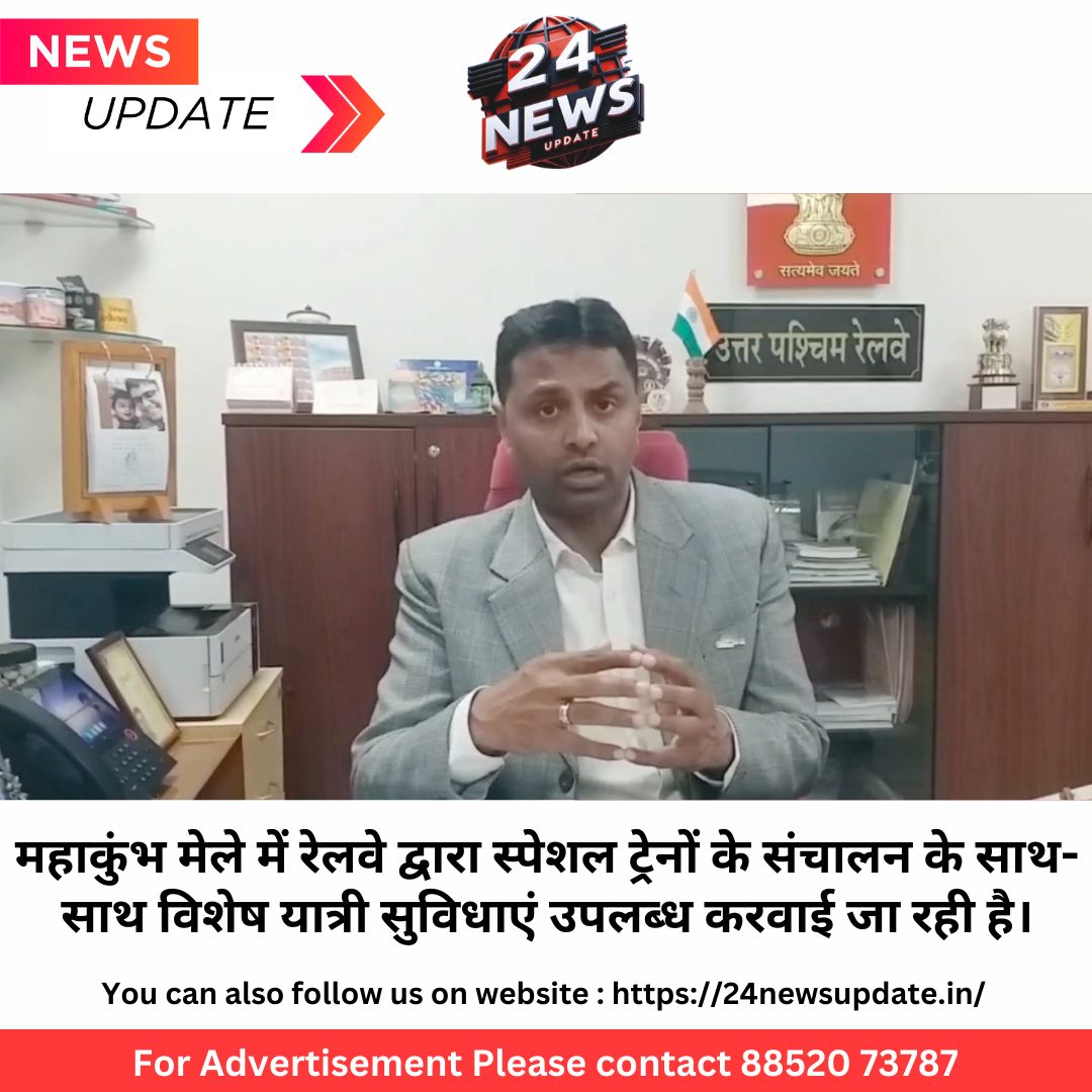 उत्तर पश्चिम रेलवे द्वारा 13 महाकुंभ मेला स्पेशल रेलसेवाओं का संचालन किया जा रहा है जो उत्तर पश्चिम रेलवे के विभिन्न स्टेशनों जैसे उदयपुर सिटी, बाडमेर, गंगानगर, अजमेर, जयपुर, जोधपुर, बीकानेर से संचालित की जा रही है। इसके साथ ही महाकुंभ के लिए जाने वाले यात्रियों को सुविधा व जानकारी के लिए महाकुंभ 2025 बुकलेट का वितरण भी किया जा रहा है।