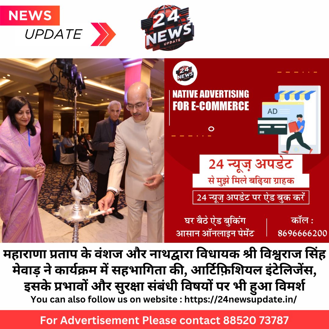 24 न्यूज़ अपडेट जयपुर/नाथद्वारा। नाथद्वारा विधायक और महाराणा प्रताप के वंशज श्री विश्वराज सिंह मेवाड़ ने होटल क्लार्क्स आमेर, जयपुर में आयोजित “महाराणा प्रताप एनुअल जियोपोलिटिक्स डायलॉग-2025” कार्यक्रम में शिरकत की।