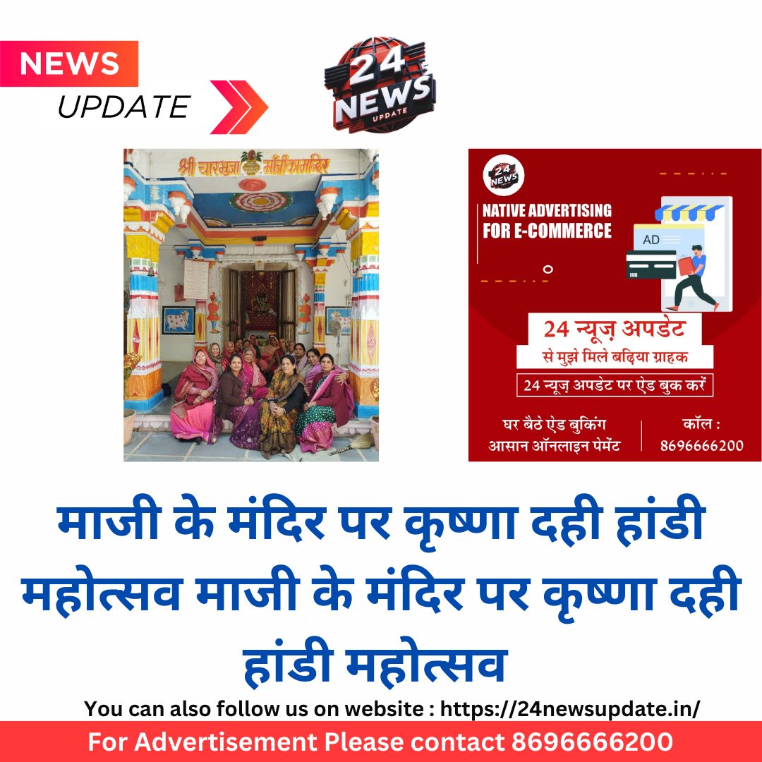 24 न्यूज़ अपडेट उदयपुर। आज माजी के मंदिर पर कृष्णा सुदामा महिला समिति द्वारा कृष्णा दही हांडी महोत्सव मनाया गया और भजन और नृत्य कार्यक्रम का आयोजन हुआ। समिति के अध्यक्ष आशा जी कुमावत ने बताया कि हर तेरस पर चारभुजा जी, कृष्णा जी के मंदिर जाकर दही हांडी,फल फूल,माला आदि लेकर जाते हे, की हे कृष्णा भगवान को हम सभी भक्त मिलकर याद दिलाते हे कि जैसे सुदामा आपके मित्र हे वैसे हम सभी भक्त भी आपके प्रिय जन है तो आप हमे भी याद रखे और आशीर्वाद बनाए रखे ,जिस तरह सुदामा जी के सारे बारे न्यारे हो गए,उसीतरह हम सभी कृष्ण भक्तो का भी आनन्द हो उसके लिए यह महोत्सव मनाते हैं।