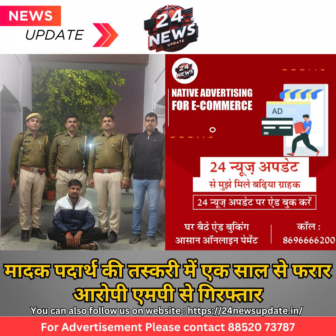 24 न्यूज़ अपडेट निम्बाहेडा। कोतवाली निम्बाहेडा पुलिस थाना की विशेष टीम ने थाना कोतवाली चित्तौड़गढ़ के एक साल पहले के अफिम जब्ती के मामले मे फरार आरोपी को मध्यप्रदेश के नीमच से गिरफ्तार किया है। पुलिस अधीक्षक सुधीर जोशी ने बताया कि नशाखोरी पर प्रभावी नियंत्रण एवं उन्मुलन के लिये अवैध मादक पदार्थो की धरपकड एवं मादक पदार्थो के प्रकरणो मे वांछित अपराधियो, स्थाई वारण्टीयो, उदघोषित एवं ईनामी अपराधियो की धरपकड़ हेतु एक विशेष अभियान जिले में चलाया जा रहा है। जिसमें समस्त थानाधिकारियों व विशेष टीम को अधिक से अधिक संख्या मे अपराधियो की धरपकड के निर्देश दिए गए। इसी क्रम में एएसपी सरीता सिंह व डीएसपी निम्बाहेड़ा बद्री लाल राव के निर्देशन में थानाधिकारी कोतवाली निम्बाहेडा रामसुमेर पु.नि. के नेतृत्व में एएसआई सूरज कुमार, साइबर सेल के हैड कानि. राजकुमार, कानि. देवेंद्र , विरेन्द्र, विजय व राकेश द्वारा आसूचना संकलन कर थाना कोतवाली चित्तौड़गढ़ के एनडीपीएस के मामले मे वांछित आरोपी मध्यप्रदेश के नीमच जिले के नीमच सीटी थाने के थडो़द निवासी कन्हैयालाल उर्फ केशव उर्फ कान्हा पिता मोहनलाल मालवी को नीमच से डिटेन कर थाना पर लाये। आरोपी से अनुसंधान जारी है आरोपी की गिरफतारी में साइबर सेल के हैड कानि. राजकुमार विशेष योगदान रहा।
