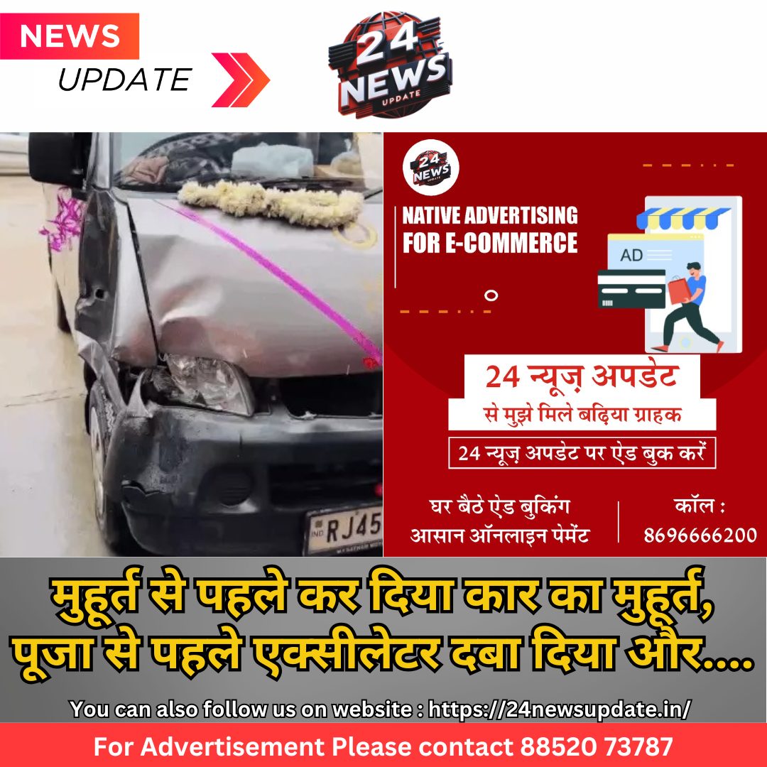 24 न्यूज अपडेट. भीलवाड़ा। कोटड़ी थाना इलाके के श्माम मंदिर के बाहर कल हादसा हुआ। दोपहर 1.30 बजे मुहूर्त के लिए आई ईको वैन ने एक व्यक्ति को उडा दिया। हादसे में युवक बाल-बाल बच गया। बताया गया कि 15 जनवरी को नई ईको वैन का मालिक पूजा के लिए गाड़ी को धार्मिक स्थल कोटड़ी श्याम मंदिर ले गया। कार को मंदिर के गेट के पास पार्क कर दिया। वैन की मुहूर्त पूजा के लिए इंतजार हो रहा था। कार में बैठे ड्राइवर ने अचानक ही ब्रेक लगाने की जगह एक्सीलेटर को दबा दिया। कार अचानक वहां पर मौजूद एक आदमी को उड़ाते हुए केबिन में जा घुसी। कार का हादसे में हुलिया भी बिगड गया।
