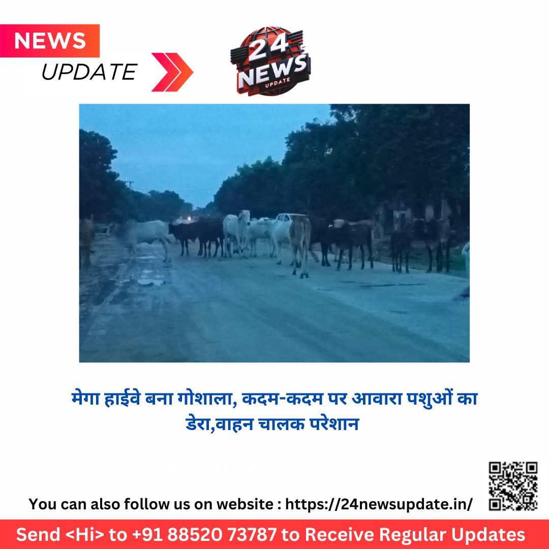 24 न्यूज़ अपडेट शाहपुरा. मेगा हाइवे 12 भीलवाडा जिले से शाहपुरा होते हुए कैकड़ी वाया जयपुर पर इन दिनों आवारा पशुओं का जमावड़ा दुर्घटनाओं का सबब बनता जा रहा है।अधिकतर गावों में गोवंश बीच हाइवे पर बैठे रहते है। जबकि हजारों भारी वाहन निकलते हैं कहीं बार देखा जाता हैं अचानक वाहन के सामने आने पर चालक अनियंत्रित होकर दुर्घटनाग्रस्त हो जाते हैं।दिन के समय में तो ये जानवर नजर आ जाते है, लेकिन रात के समय दिखाई भी नहीं देते आलम यह है। कि हाईवे के दोनों ओर पूरी सड़क पर कब्जा जमाए रहते हैं।इन दुर्घटनाओं में दर्जनों पशुओं की भी मौत हो चुकी है। ऐसा ही नजारा देखने को मिला बासेड़ा पंचायत मैं आवारा पशुओं जहां गायों व बछड़ों आवारा कुत्तों का झुंड देखने को मिला आने जानें वाले भारी वाहनों के हॉर्न बजाने के बावजूद एक तरफ नहीं होते जिससे हादसा का शिकार हों जाते हैं।कई बार तो भारी वाहनों के चालकों को नीचे उतर कर आवारा पशुओं को एक तरफ किया जाता हैं।जिला प्रशासन आवारा पशुओं के मौते होने बचाया जाए