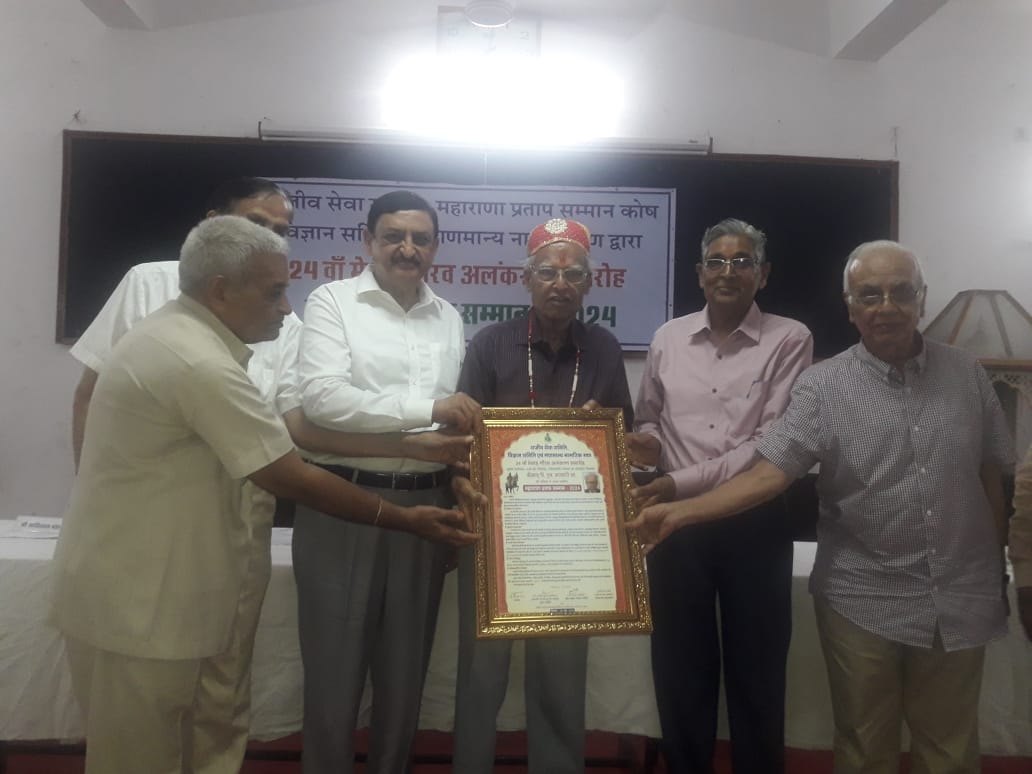 24 न्यूज अपडेट उदयपुर. संजीव सेवा समिति व विज्ञान समिति उदयपुर की ओर से विज्ञान समिति सभागार मे आयोजित 24 वे “मेवाड़ गौरव अलंकरण समारोह” के मुख्य अतिथि प्रो. अजीत कुमार कर्नाटक, कुलपति एमपीयूएटी थे व समारोह की अध्यक्षता प्रो. शांतिलाल मेहता, पूर्व कुलपति एमपीयूएटी ने की । ” महाराणा प्रताप सम्मान 2024″ प्राप्त करते हुए श्रीमान पी एन भंडारी अति. मुख्य सचिव राजस्थान सरकार ने अपने उद्बोधन मे कहा कि मेवाड़ में मिले स्नेह व सम्मान से मैं अभीभूत हूं । उन्होंने आगे कहा कि पूर्व में इस सामान को प्राप्त करने वाले सभी महान विभूतियों के सामने मैं अपने आप को एक अदना सा सेवक मानता हूं जिसने जनता व समाज के व्यापक हित में आलोच्य किंतु अंततोगत्वा स्वीकार्य निर्णय लिए । आज मुझे इस बात की खुशी है कि मेरे द्वारा लिए गय उन निर्णयों के दूरगामी सुखद परिणाम देखने को मिल रहे है।