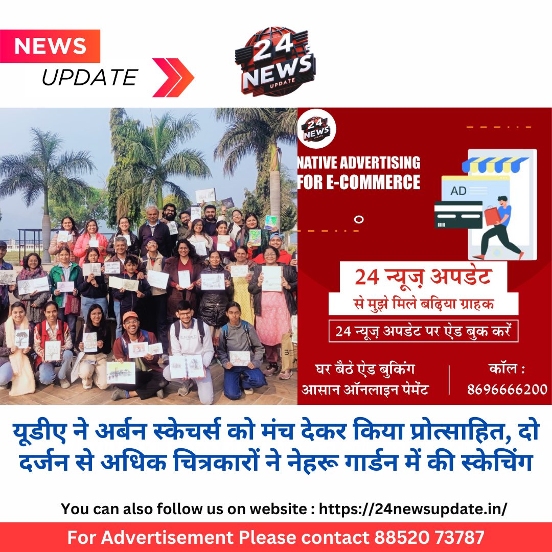 24 न्यूज़ अपडेट उदयपुर। कला, साहित्य और शिल्प-वैशिष्ट्य की धरा लेक सिटी उदयपुर में युवा स्केचर्स के समूह ‘अर्बन स्केचर्स’ की हर सप्ताह की साधना को प्रोत्साहित कर संबल प्रदान करने के लिए उदयपुर विकास प्राधिकरण ने पहल की और नेहरू गार्डन में आमंत्रित कर स्कैचिंग करवाई है।