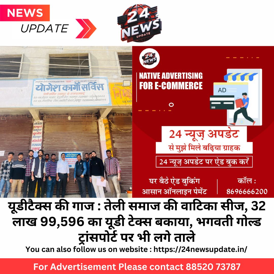 24 न्यूज अपडेट. उदयपुर। नगर निगम द्वारा लगातार यूडी टैक्स वसूली को लेकर सख्त कार्रवाई लगातार जारी है, एक बार फिर से राजस्व शाखा द्वारा दो प्रतिष्ठानों को सीज किया गया। नगर निगम राजस्व अधिकारी नितेश भटनागर ने बताया कि आयुक्त राम प्रकाश के निर्देश पर नगरीय विकास कर वसूलने को लेकर फिर बड़ी कार्यवाही करते हुए 2 संपत्तियों को सीज किया गया। बुधवार को ब्रह्म्पोल हरिदास जी की मगरी स्थित केटीएस गार्डन, कचेली तेली समाज की वाटिका जिसका नगरीय विकास कर कुल 32 लाख 99,596/- बकाया था जिसे सीज किया गया। सबसिटी सेन्टर ब्लॉक स्थित भगवती गोल्ड ट्रान्सपोर्ट कंपनी की संपत्ति जिसका 7,65,299/- रुपए का नगरीय विकास कर बकाया था जिसे भी सीज किया गया। इनके द्वारा नगरीय विकास कर की राशि जमा नहीं कराने से नगर निगम द्वारा इन व्यावसायिक सम्पतियों पर ताला लगा इनकी व्यावसायिक गतिविधियाँ बन्द करा दी गई। निगम ने नोटिस में अंकित किया की नगरीय विकास एंव स्वायत शासन विभाग की अधिसूचना क्रमांक 5513 दिनांक 29.00.2007 एंव अधिसूचना क्रमांक 8884 व 9356 दिनांक 24.08.2016 के तहत के वर्ष 2007 से 2023 तक उक्त संपत्ति का नगरीय विकास कर की पूरी रकम बकाया है। संबंधित फर्मों द्वारा टैक्स बकाया रहने के लिए कोई संतोषप्रद का कारण भी नही बताया गया है। फर्म से कुल बकाया का नोटिस भी तामिल करवाया जा चुका था। सभी कार्यवाही पूरी करने के उपरांत निगम ने कार्यवाही करते हुए राजस्थान नगरपालिका अधिनियम 2009 की धारा की उपबंधों के अधिन यू डी टैक्स की वसूली की पूर्ती हेतु दोनों संपतियो को सीज करने की कार्यवाही की गई। कार्यवाही के दौरान राजस्व अधिकारी के साथ सहायक प्रशासनिक अधिकारी विनोद अग्रवाल और भारी पुलिस बल मौजूद रहा। नगर निगम द्वारा यू डी टैक्स वसूली को लेकर लगातार कार्रवाई की जा रही है। आयुक्त राम प्रकाश ने स्पष्ट शब्दों में कहा कि नगरीय विकास कर सरकार द्वारा हर हाल में वसूल किया जाएगा। 1 वर्ष पश्चात राज्य सरकार द्वारा इसमें छूट प्रदान की गई है जिसका शहरवासी लाभ लें। जिसे भी अपनी संपत्ति को सीज होने से बचाना है वह जल्द से जल्द नगर निगम में अपना बकाया यूडी टैक्स जमा कराएं।