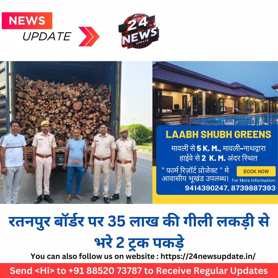 24 न्यूज अपडेट. डूंगरपुर। बिछीवाड़ा थाना पुलिस ने गुजरात से सटे रतनपुर बॉर्डर पर कंटेनर और आयशर ट्रक को पकड़ा जिसमें गीली लकड़ी भरी हुई थी। बताया गया कि यह तस्करी कर गुजरात ले जा रही थी। इन दोनों की कीमत करीब 35 लाख रुपए है। वन विभाग की ओर से अब दोनों से जुर्माना की कार्रवाई की गई है। बिछीवाड़ा थानाधिकारी कैलाश सोनी ने बताया कि चौरासी विधानसभा चुनावों की आचार संहिता के तहत गुजरात के रतनपुर बॉर्डर पर वाहनों की जांच की जा रही है। इस दौरान उदयपुर की ओर से आ रहे एक आइसर ट्रक ओर एक कंटेनर को रूकवाया। कंटेनर ड्राइवर बालकिशन निवासी टीपी नगर जयपुर और ट्रक ड्राइवर सुरेश मीणा निवासी वल्लभ नगर उदयपुर बताया। तलाशी में अंदर पंचमेल की गीली लकड़ी भरी हुई मिली। लकड़ी परिवहन को लेकर दोनों के पास कोई कागजात नहीं थे। जिस पर पुलिस ने कंटेनर ओर ट्रक को जब्त कर लिया। दोनों गाड़ियों के साथ लकड़ी की कीमत करीब 35 लाख रुपए बताई जा रही है। वहीं, पुलिस ने कार्रवाई की सूचना वन विभाग को दी है। जिस पर वन विभाग की ओर से जुर्माना की कार्रवाई की जाएगी।