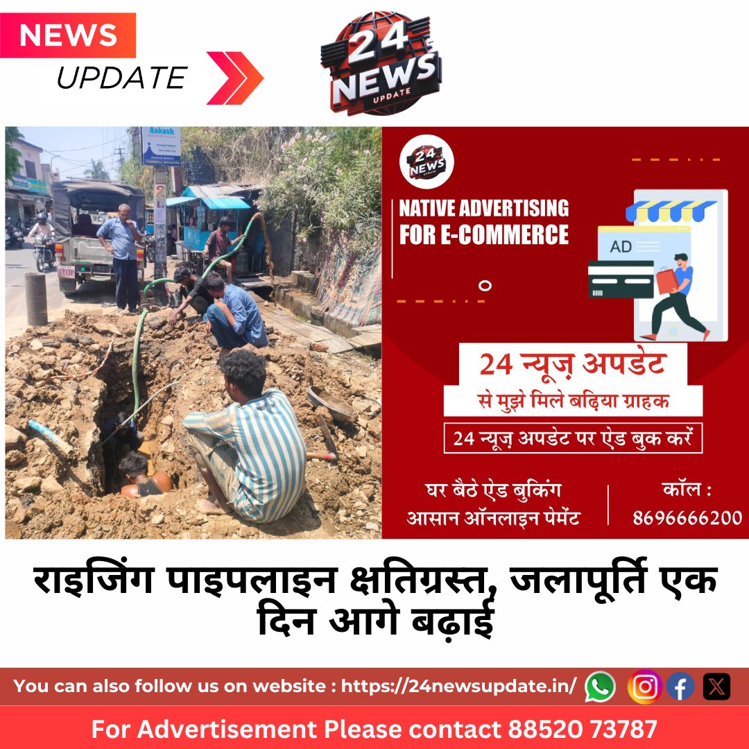24 News Update उदयपुर, 11 अप्रेल। जन स्वास्थ्य अभियांत्रिकी विभाग के नगर उपखण्ड सप्तम अंतर्गत मानसी वाकल परियोजना की राइजिंग पाइपलाइन केबल खुदाई कार्य के चलते क्षतिग्रस्त हो गई है।