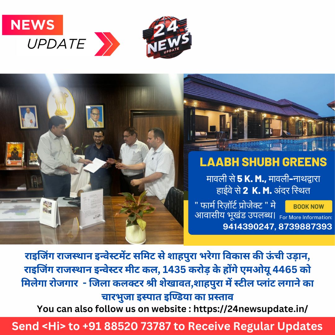 24 न्यूज़ अपडेट शाहपुरा। शाहपुरा में 22 अक्टूबर को मणियार कांटेज में राइजिंग राजस्थान 2024 कार्यक्रम आयोजित किया जायेगा। जिला उद्योग एवं वाणिज्य केन्द्र महाप्रबंधक के. के. मीना ने बताया कि राजस्थान सरकार द्वारा दिनांक 9-11 दिसंबर 2024 में राजस्थान राइजिंग कार्यक्रम का आयोजन किया जायेगा, जिसमें राज्य में देश- विदेशों के निवेशकों से एमओयू किया जायेंगे। राज्य सरकार द्वारा सभी जिलों में राइजिंग राजस्थान जिला स्तरीय इन्वेस्टर मीट आयोजित किया जावेंगे । जिला शाहपुरा मे मनियार काटेज में इन्वेस्टर मीट का आयोजन किया जायेगा।इसमें नये निवेशकों के साथ एमओयू किये जावेंगे। राज्य सरकार द्वारा ईकाईयों को प्राथमिकता के आधार पर हैण्डहोल्डिंग कर नियमानुसार सरकार की योजनाओं में लाभान्वित कराया जावेगा । उद्योग एवं वाणिज्य विभाग द्वारा डा. भीमराव अम्बेडकर दलित आदिवासी उद्यम प्रोत्साहन योजना, रीप्स 2019/2022 , प्रधानमंत्री रोजगार सृजन कार्यक्रम योजनाएं चलाई जा रही है।बजट घोषणा 2024 में भी नई औद्योगिक नीति, राजनिवेश नीति , एक जिला एक उत्पाद नीति, एमएसएमई नीति, लॉजिस्टिक्स नीति टेक्सटाइल पॉलिसी सहित अनेक योजनाएं लाने की घोषणा की गई है। राज्य सरकार द्वारा रीप्स 2024 योजना लागू कर दी गई है। रीको लि. द्वारा शाहपुरा जिले में नये औद्यौगिक क्षेत्र फतेहपुरा सहेलियां, जहाजपुर, को दिया ( कोटडी) , पीपलूंद (जहाजपुर) , पाण्डेय ( जहाजपुर )में स्थापित किये जाने की कार्यवाही रीको लिमिटेड द्वारा प्रक्रियाधीन है। विभाग द्वारा अभी तक 75 एमओयू किये गये हैं जिसमें लगभग 1435 करोड़ का निवेश 4465 रोजगार सृजित होने की संभावना है। इनमें जिला कलक्टर के समक्ष एक ही दिन में 1100 करोड़ रूपये के एम ओ यू की सहमति बनी है |चारभुजा इस्पात इंडिया प्रा.लि. द्वारा शाहपुरा जिले में 1100 करोड़ रूपये की लागत से स्टील प्लांट लगाया जायेगा, जिसमें लगभग 2100 लोगों को रोजगार मिलने की संभावना है, इसी के साथ गोलछा ग्रुप द्वारा भी 40 करोड़ रूपये की लागत से टैलको प्रोसेसिंग एण्ड ग्राइडिंग यूनिट के प्लांट में निवेश किया जायेगा , इसी के साथ एक जिला एक उत्पाद के तहत टैक्सटाइल प्रोडक्ट के क्षेत्र में 07 एम ओ यू 220.59 करोड़ रूपये, एग्रो एण्ड फूड प्रोसेसिंग में 17 एम ओ यू 24.05 करोड़, स्वास्थ्य एवं चिकित्सा क्षेत्र में 1 एम ओ यू 2 करोड़ , माइन्स में 3 एम ओ यू 23 करोड़ , सीमेंट में 14 एम ओ यू 14.01 करोड़, पर्यटन में 1 एम ओ यू 2 करोड़, शिक्षा के 3 एम ओ यू 5 करोड़ एवं अन्य क्षेत्र में 28 एम ओ यू 99.86 करोड़ के प्राप्त हुए हैं ।