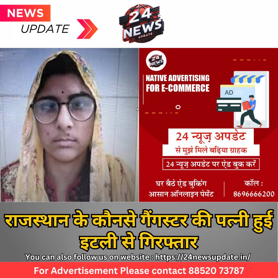 24 न्यूज अपडेट. जयपुर। एजीटीएफ टीम ने गैंगस्टर रोहित गोदारा गैंग के सक्रिय बदमाश अमरजीत विश्नोई की पत्नी सुधा कंवर (26) को अरेस्ट किया है वह भी इटली से। एंटी गैंगस्टर टास्क फोर्स (एजीटीएफ) राजस्थान ने बुधवार को इटली के ट्रेपानी शहर से दबिश देकर लोकल पुलिस की मदद से उसको पकड़वाया। यह महिला अपने पति की मदद से टूरिस्ट वीजा पर देश से भाग गई थी। महिला सुधा कंवर पर बिजनेसमैन को धमकाने, फायरिंग करवाने सहित कई आरोप हैं। राजू ठेहट हत्याकांड में भी नाम आया था। एडीजी दिनेश एमएन ने मीडिया से कहा किएंटी गैंगस्टर टास्क फोर्स ने गैंगस्टर रोहित गोदारा गैंग के सक्रिय बदमाश अमरजीत विश्नोई की पत्नी सुधा कंवर (26) निवासी बीछवाल बीकानेर को गिरफ्तार करवाया है। अंतरराष्ट्रीय स्तर पर इंटरपोल एजेंसी के साथ समन्वय बनाकर एजीटीएफ टीम ने कार्रवाई करवाई है। इटली की लोकल पुलिस के जरिए बुधवार को ट्रेपानी शहर के सिसली इलाके में दबिश देकर सुधा कंवर को पकड़ा गया। गैंगस्टर अमरजीत विश्नोई और उसकी पत्नी सुधा कंवर व्यापारियों को धमकी भरे कॉल कर जबरन वसूली करते हैं। वसूली के रुपए नहीं मिलने पर गैंग के बदमाश पीड़ित बिजनेसमैन और उसके परिवार पर गोलीबारी तक करते हैं। सुधा कंवर का पति अमरजीत विश्नोई रोहित गोदारा और गिरोह के अन्य सदस्यों के लिए ’डब्बा कॉल’ की व्यवस्था करता था। अमरजीत को एजीटीएफ की सूचना पर पिछले साल 8 जुलाई को इटली में स्थानीय पुलिस के जरिए गिरफ्तार किया जा चुका है। गैंगस्टर अमरजीत की पत्नी सुधा कंवर (26) मूलतः मेड़ता सिटी (नागौर) की रहने वाली है। पहले पति से तलाक होने के बाद इसने अमरजीत विश्नोई के साथ शादी की थी और अपराध की दुनिया में शामिल होकर पति का साथ देने लगी। 3 दिसंबर 2022 को गैंगस्टर राजू ठेहट हत्याकांड के शूटरों में से मनीष उर्फ बच्चिया को सुधा कंवर ने रुपए ट्रांसफर कर और हथियार उपलब्ध करवाकर मदद की थी। पुलिस ने 5 फरवरी 2023 को मामले में सुधा कंवर को अरेस्ट कर जेल भेज दिया था।